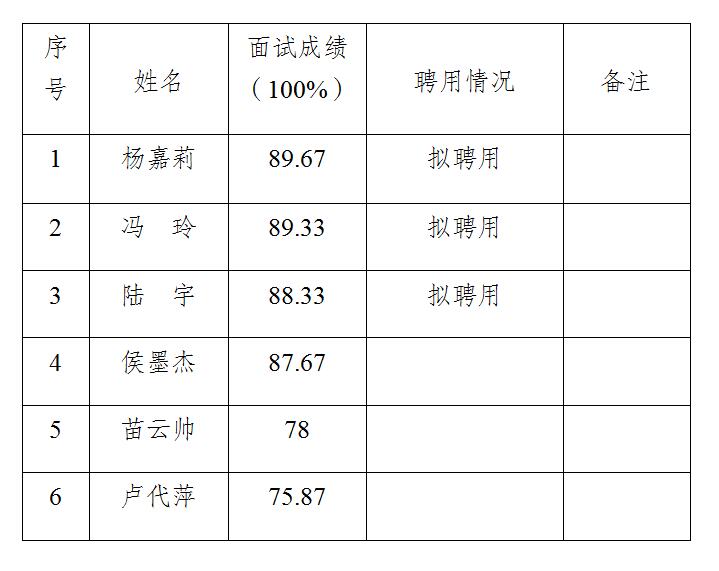 根據(jù)《麻栗坡縣工業(yè)園區(qū)投資開發(fā)有限責(zé)任公司招聘信息》要求,于2019年3月7日進(jìn)行了面試,本次招聘共有6人參加面試,錄用3人,公司將按面試成績(jī)擇優(yōu)錄取,現(xiàn)將擬聘用情況予以公示,公示期為5天,如對(duì)公示內(nèi)容有異議,請(qǐng)與麻栗坡縣工業(yè)園區(qū)投資開發(fā)有限責(zé)任公司聯(lián)系,聯(lián)系電話:0876—6627248。