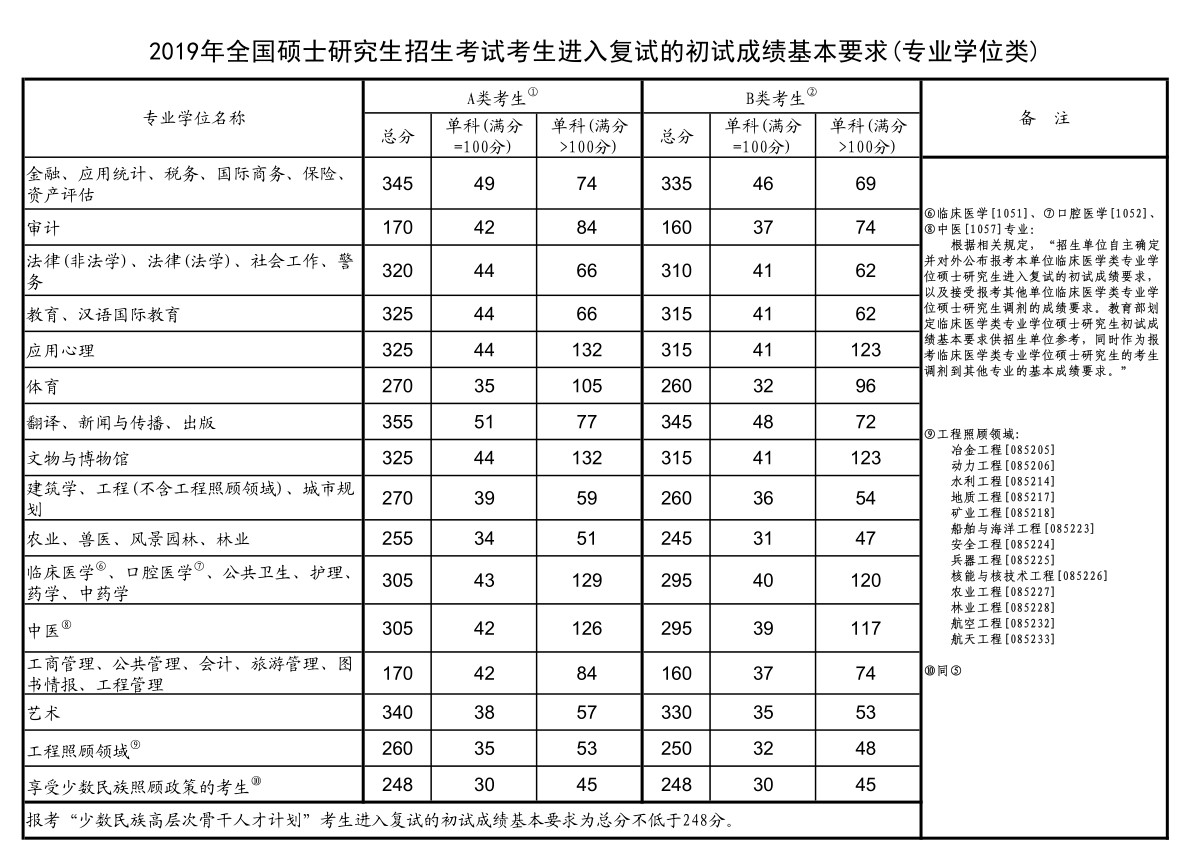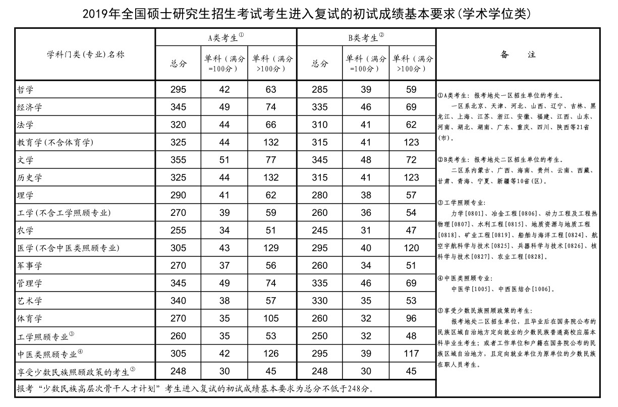 2019年全國碩士研究生招生考試考生進(jìn)入復(fù)試的初試成績基本要求
