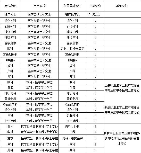 2.醫(yī)學(xué)類專業(yè)全日制學(xué)士學(xué)位本科學(xué)歷且取得中級衛(wèi)生專業(yè)技術(shù)職稱、具有科室管理經(jīng)驗人員,年齡原則在40歲以下(年齡計算截止2019年11月30日)。