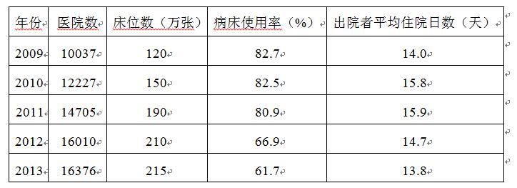 2009~2013 年某地區(qū)醫(yī)院病床使用相關(guān)情況統(tǒng)計表