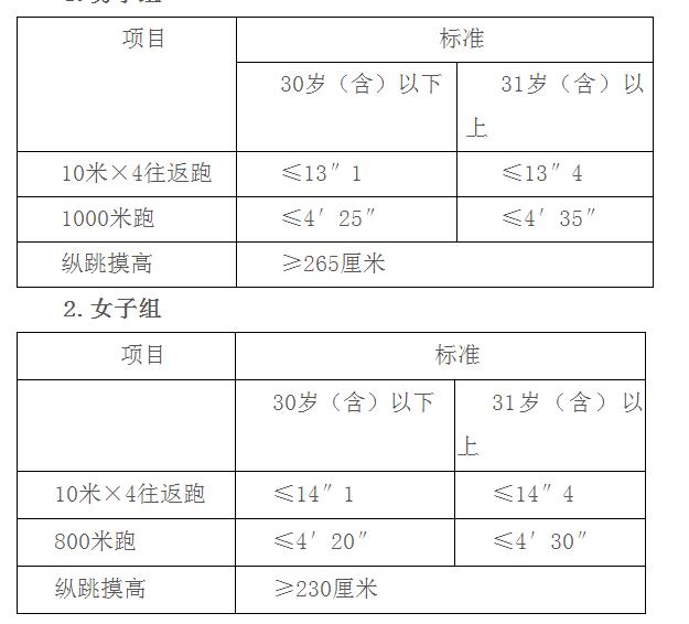 (四)體能測試標(biāo)準(zhǔn)、項目如下: