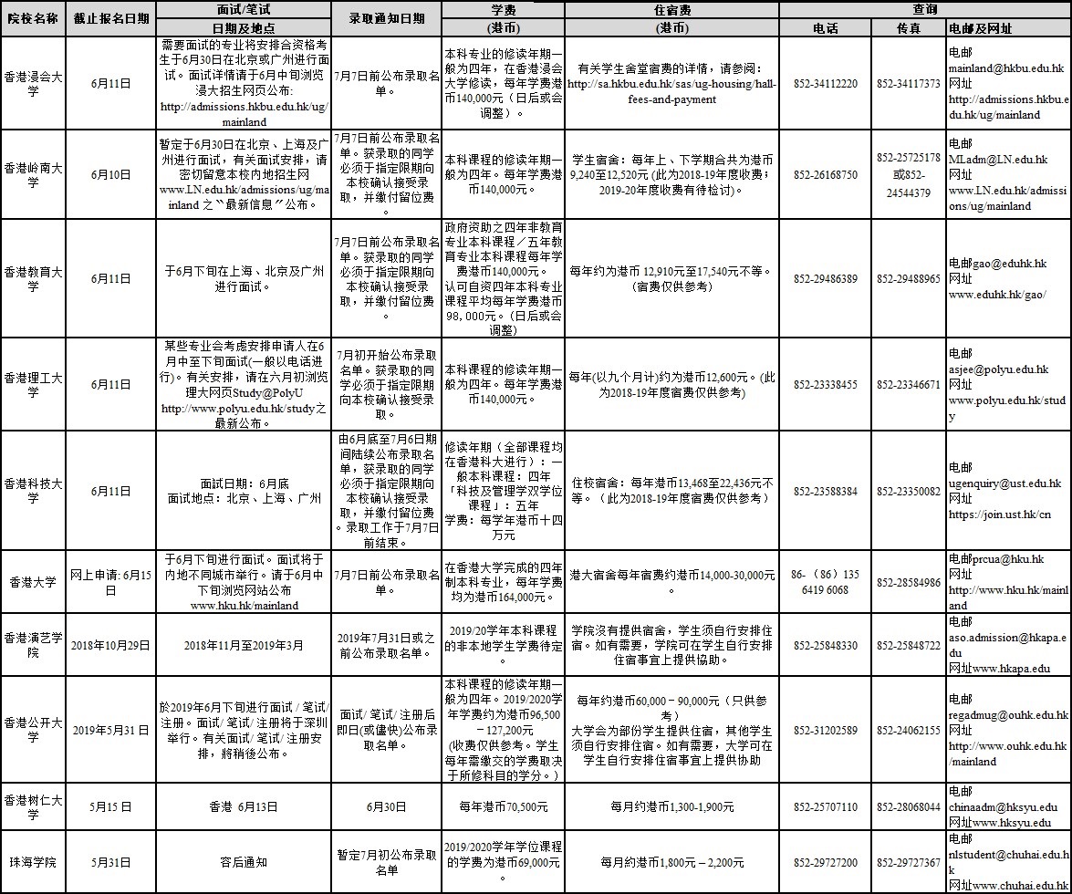 2019年香港院校內(nèi)地招生報(bào)名資訊