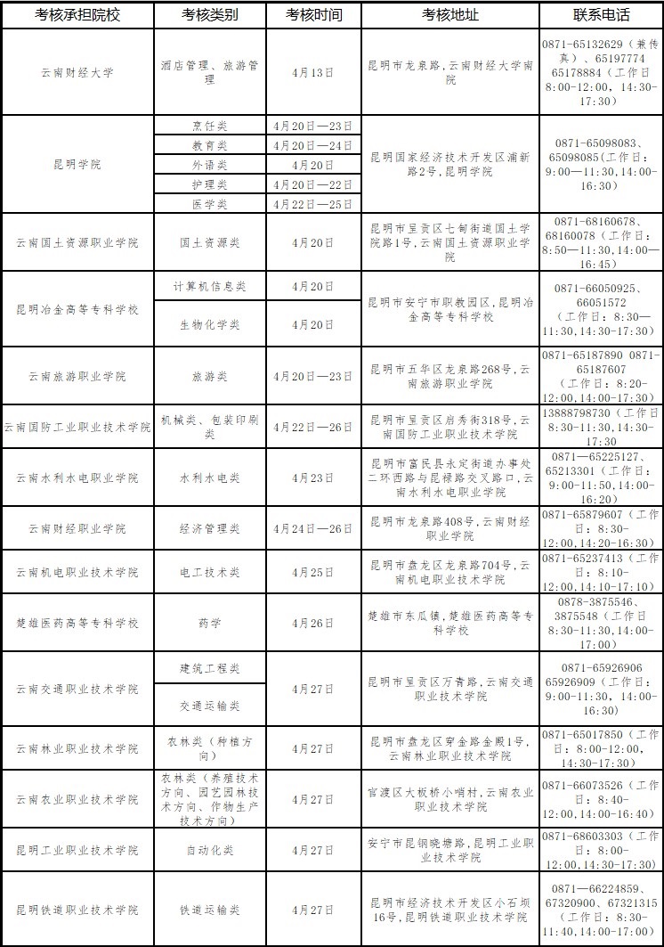 2019年云南省三校生職業(yè)技能考核時間地點安排