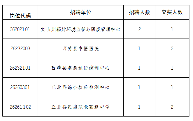 2019年文山州事業(yè)單位招聘報名工作已經(jīng)結(jié)束。經(jīng)統(tǒng)計,擬招聘的13個崗位14個計劃未達到招考通告要求的開考比例(即報名人數(shù)與計劃招聘數(shù)之比未達到3:1,不受開考比例限制的崗位除外),有4個崗位有優(yōu)秀運動員報考?,F(xiàn)將此類崗位的有關(guān)處理事宜通知如下: