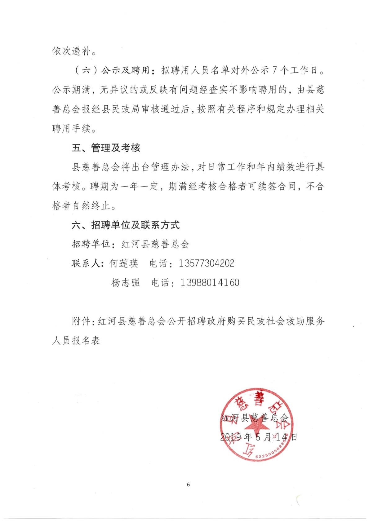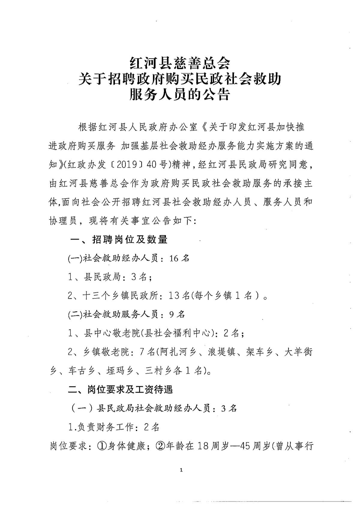 紅河縣慈善總會2019年招聘政府購買民政社會救助員公告