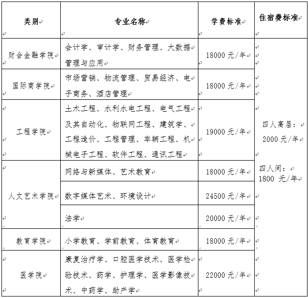 財會金融學院 | 財務管理、會計、證券與期貨、投資與理財 | 10000/年 | 四人高層: 2000元/年 四人間: 1800 元/年 八人間: 600 元/年 |