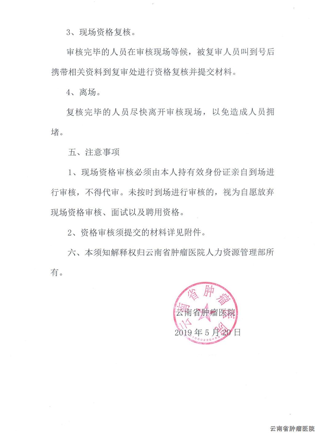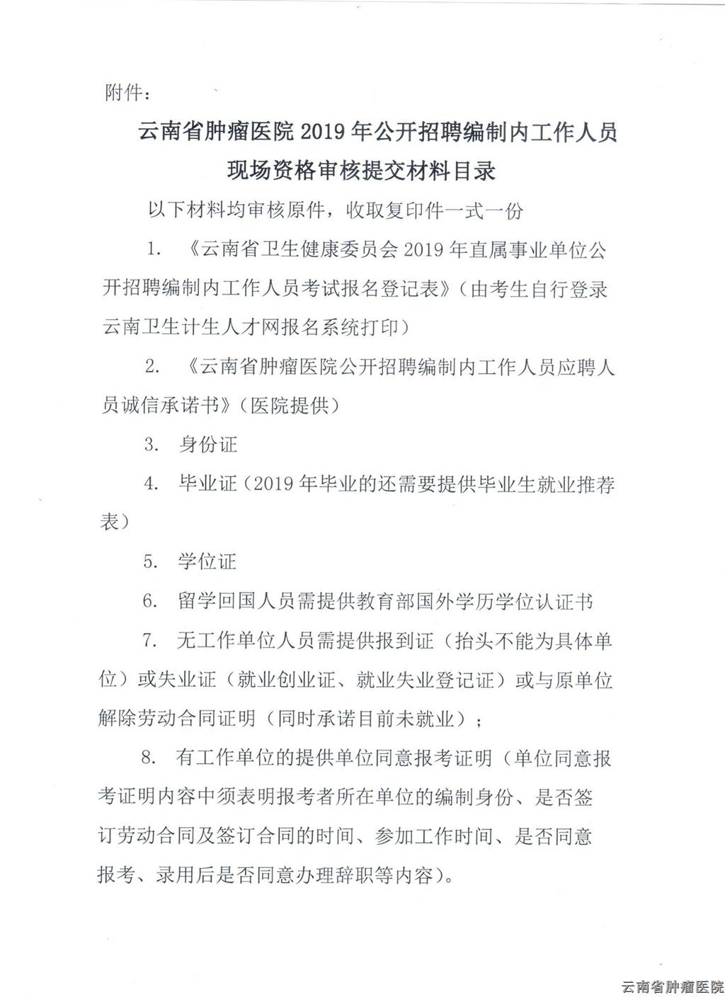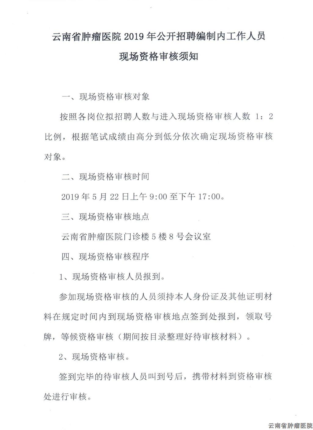 云南省腫瘤醫(yī)院2019年招聘現(xiàn)場(chǎng)資格審查須知