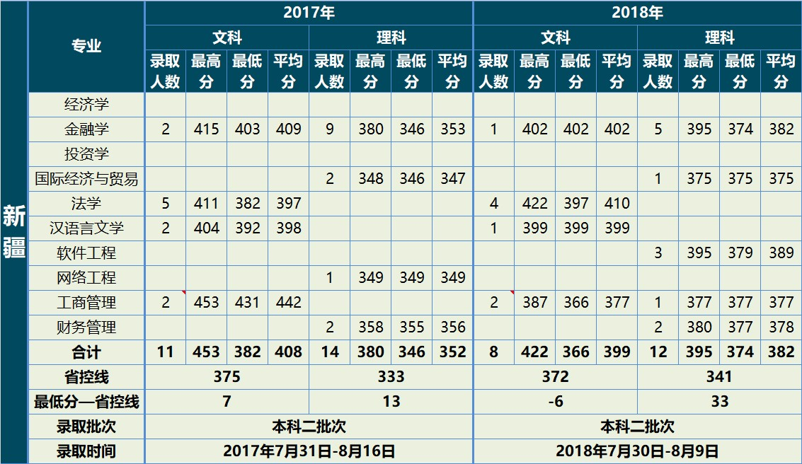 云南大學(xué)滇池學(xué)院2017、2018年錄取情況(新疆)