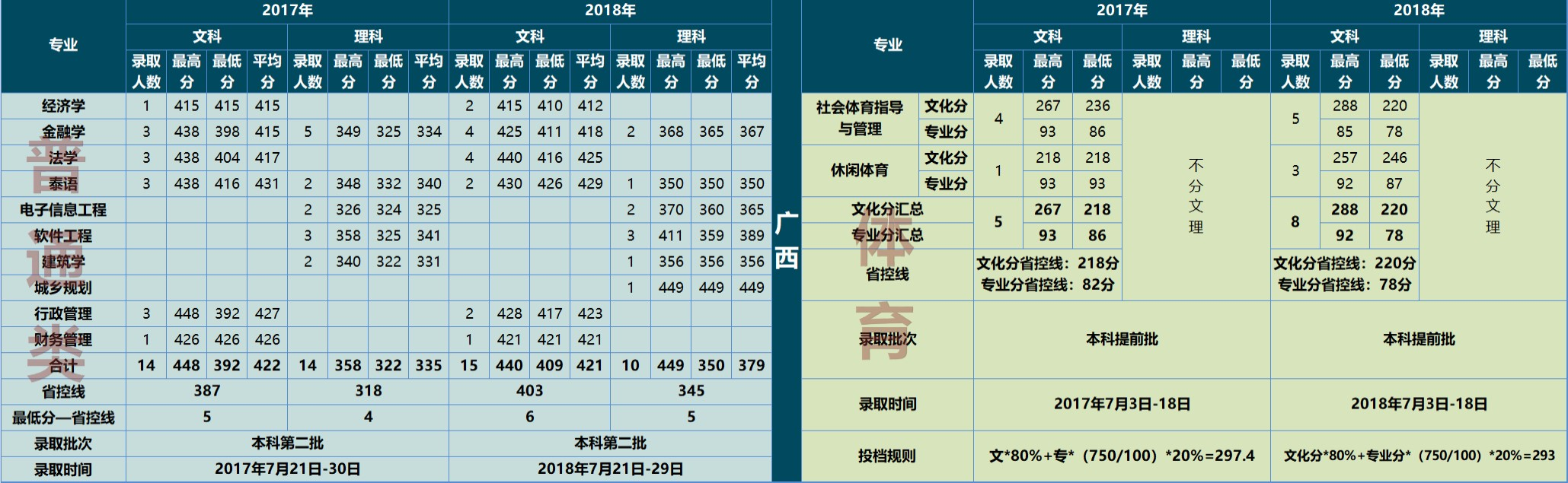 云南大學(xué)滇池學(xué)院2017、2018年錄取情況(廣西)