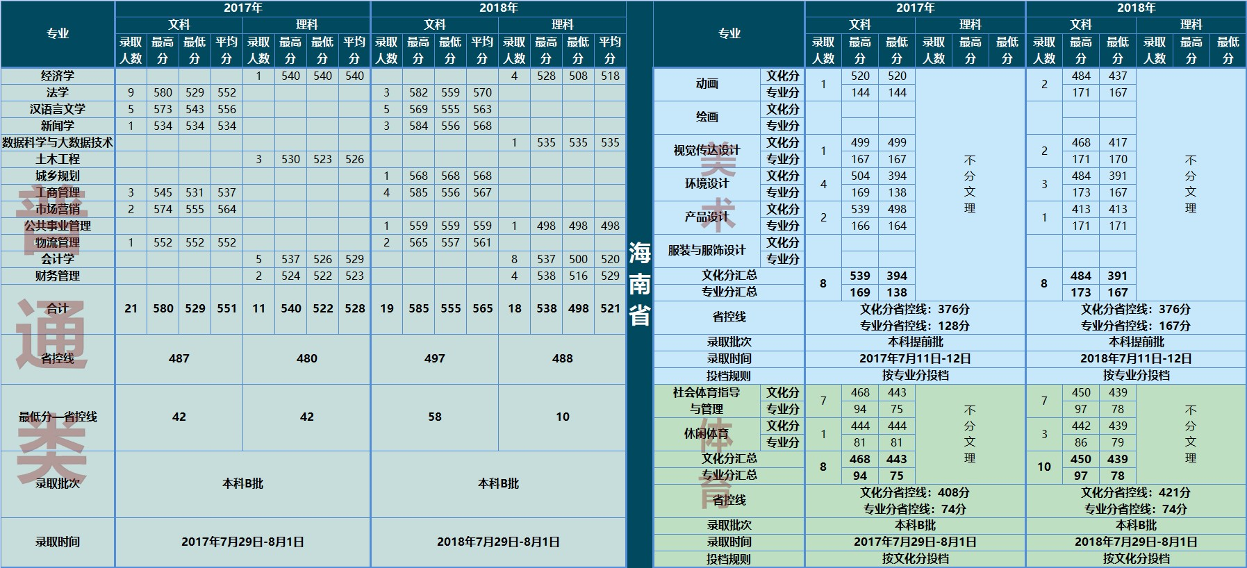 云南大學(xué)滇池學(xué)院2017、2018年錄取情況(海南省)