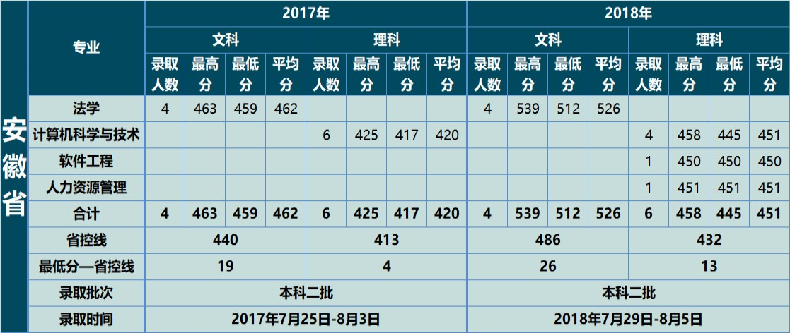 云南大學(xué)滇池學(xué)院2017、2018年錄取情況(安徽省)