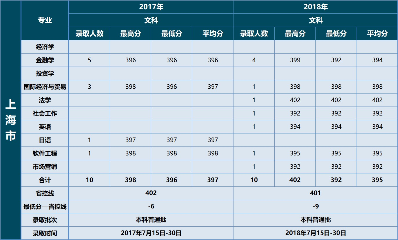 云南大學(xué)滇池學(xué)院2017、2018年錄取情況(上海市)
