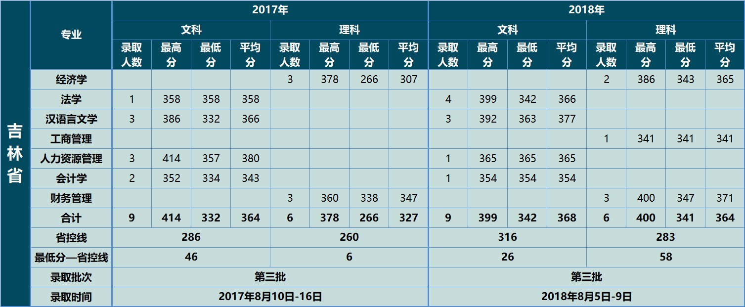 云南大學滇池學院2017、2018年錄取情況(吉林省)