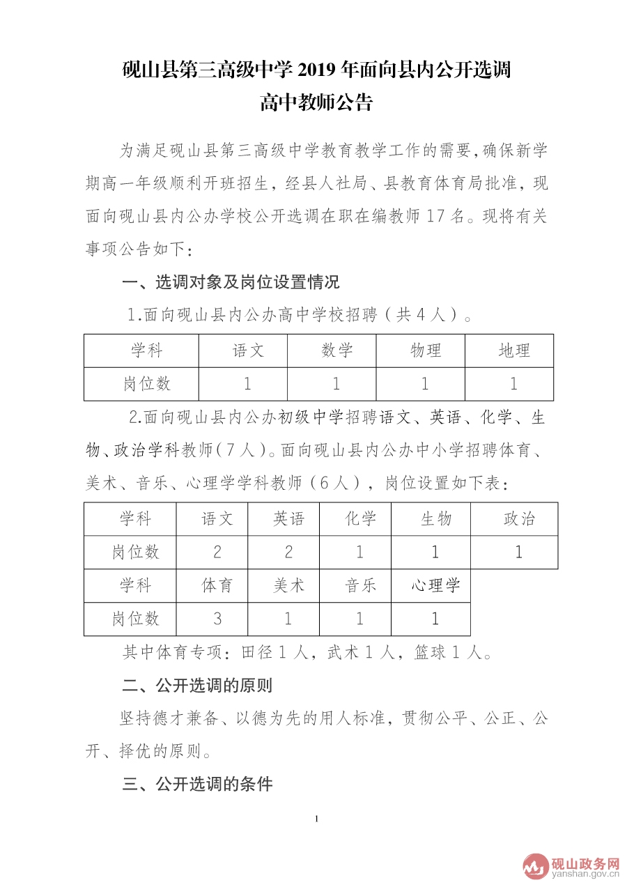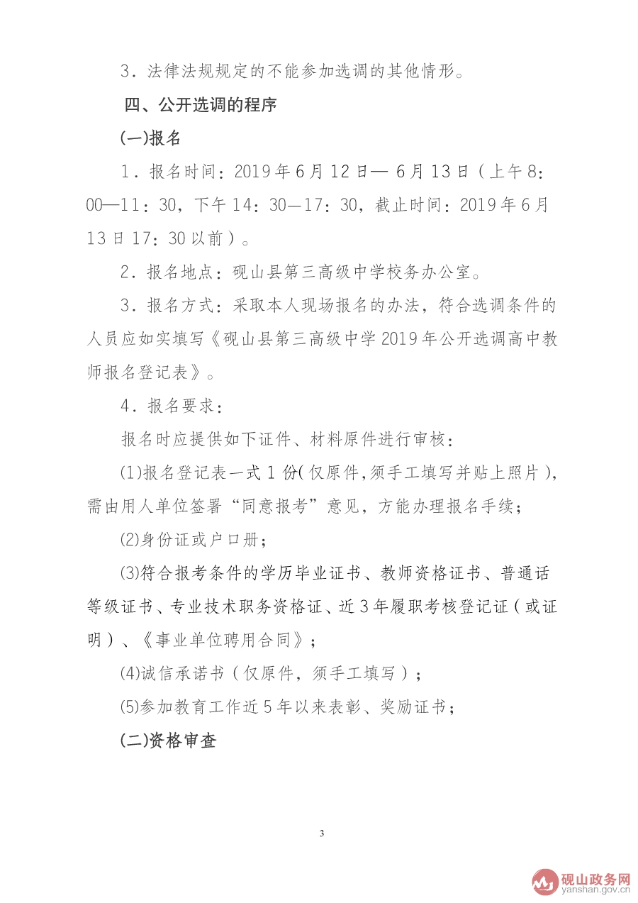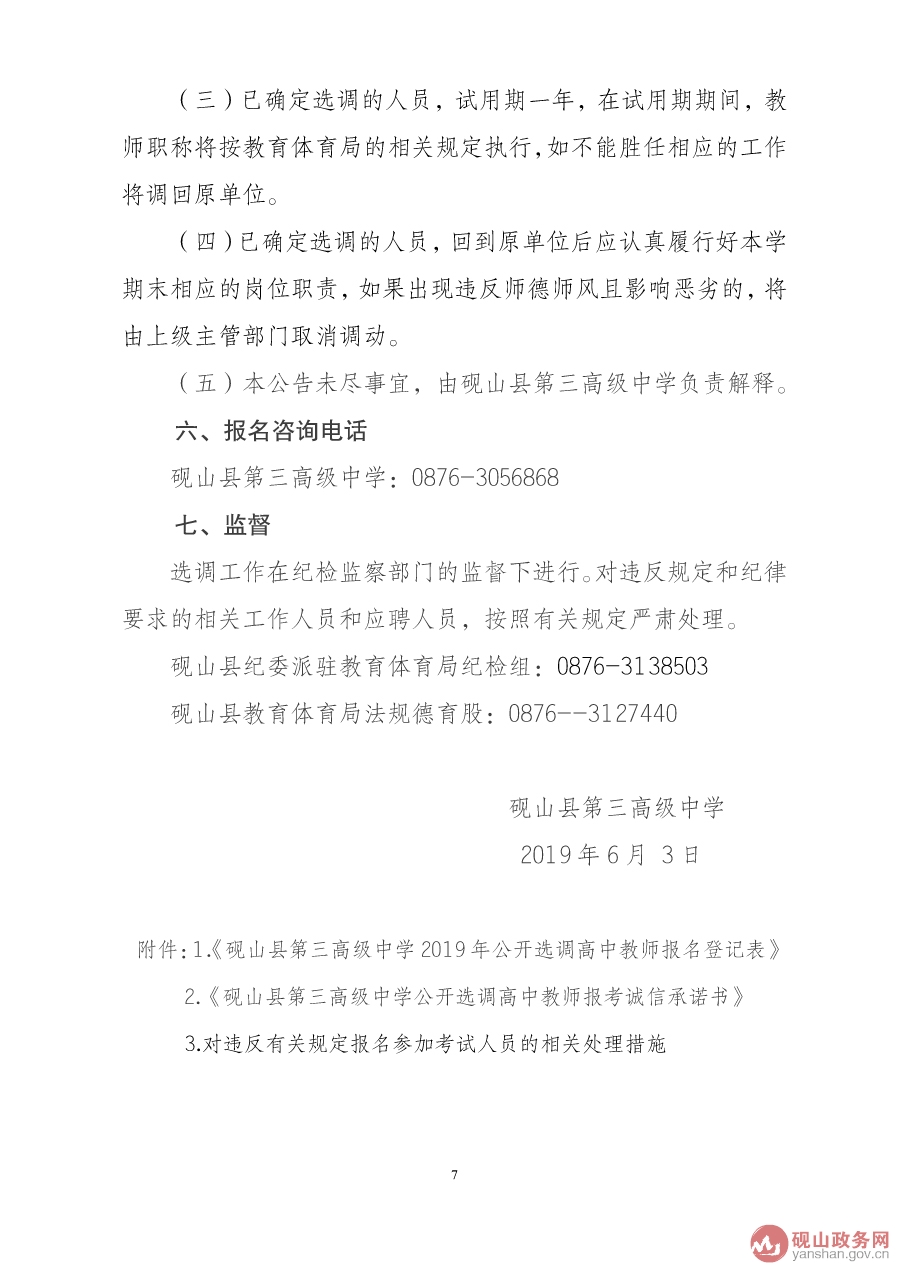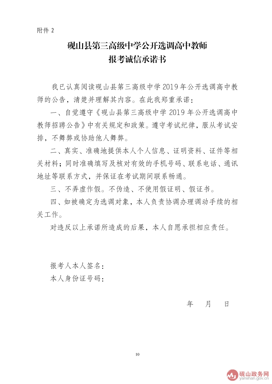 硯山縣第三高級中學2019年公開選調(diào)高中教師報名登記表