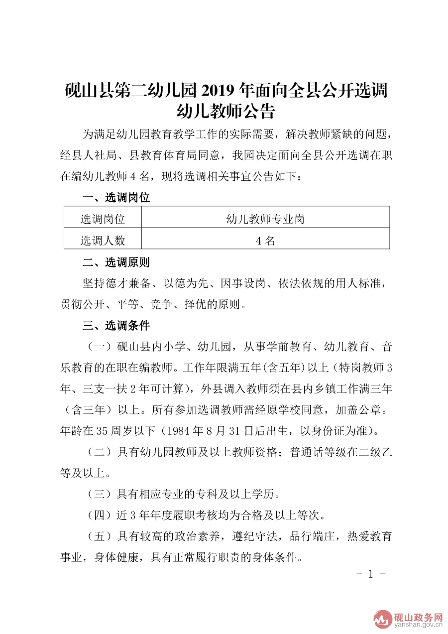 硯山縣第二幼兒園2019年面向全縣公開(kāi)選調(diào)幼兒教師公告