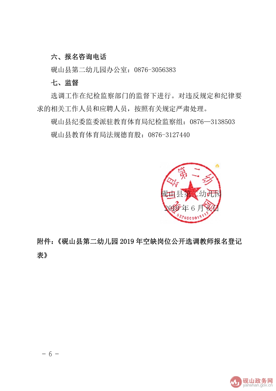 附件:《硯山縣第二幼兒園2019年空缺崗位公開(kāi)選調(diào)教師報(bào)名登記表》(點(diǎn)擊下載)