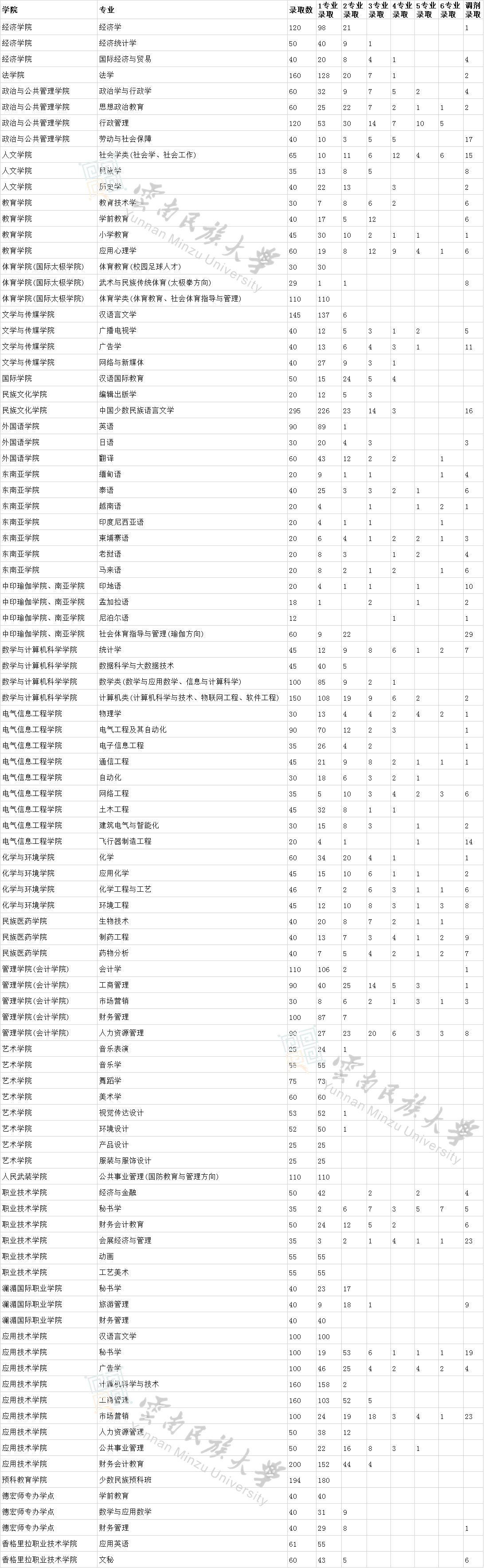 2018年云南民族大學(xué)錄取專業(yè)志愿分布統(tǒng)計表