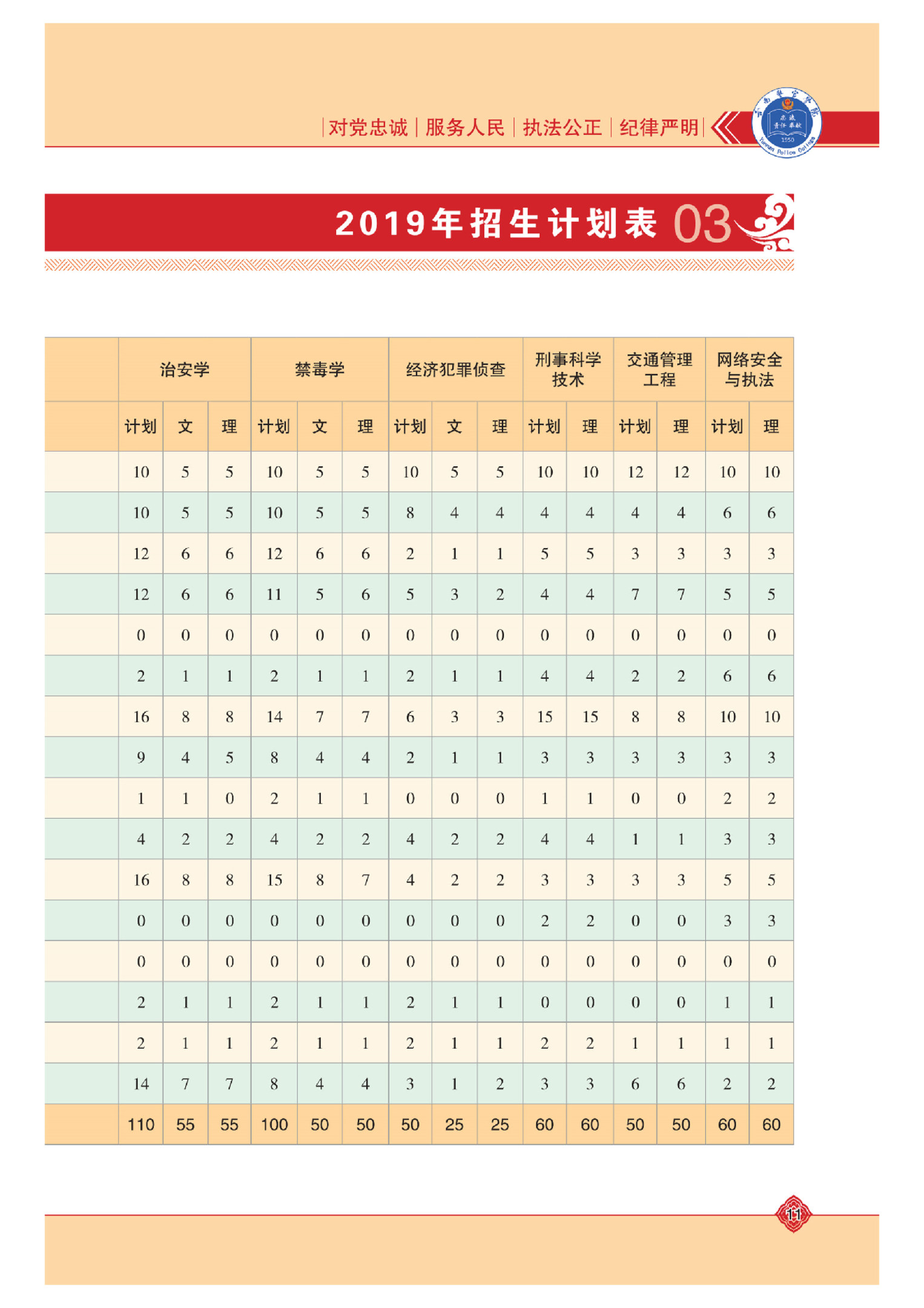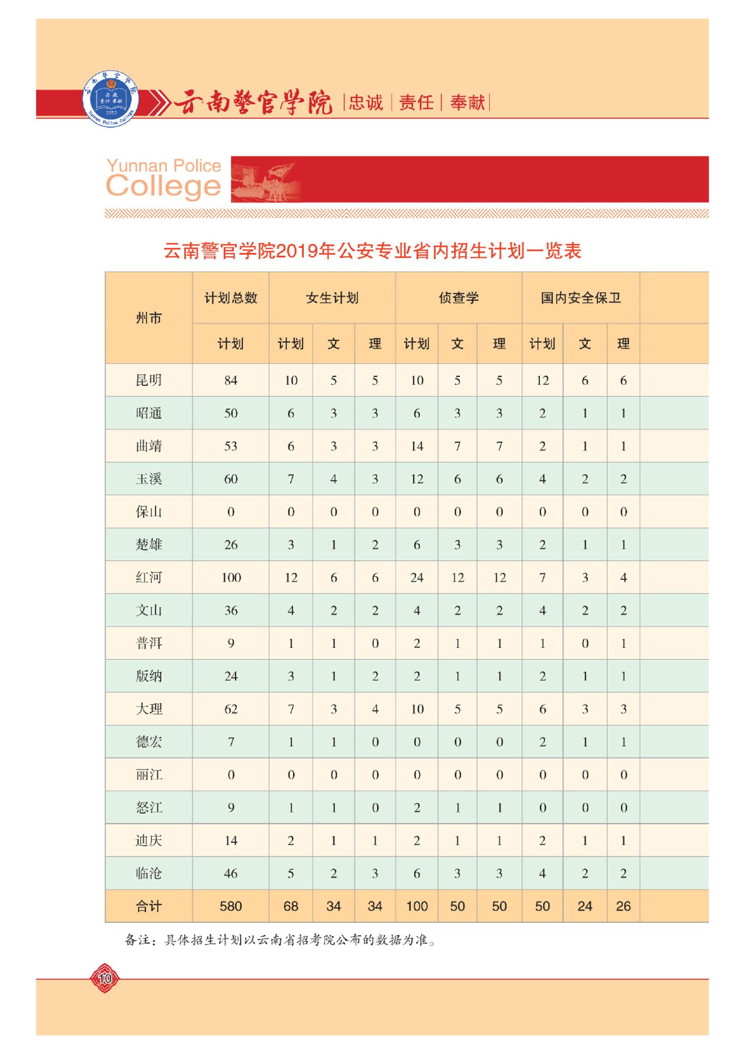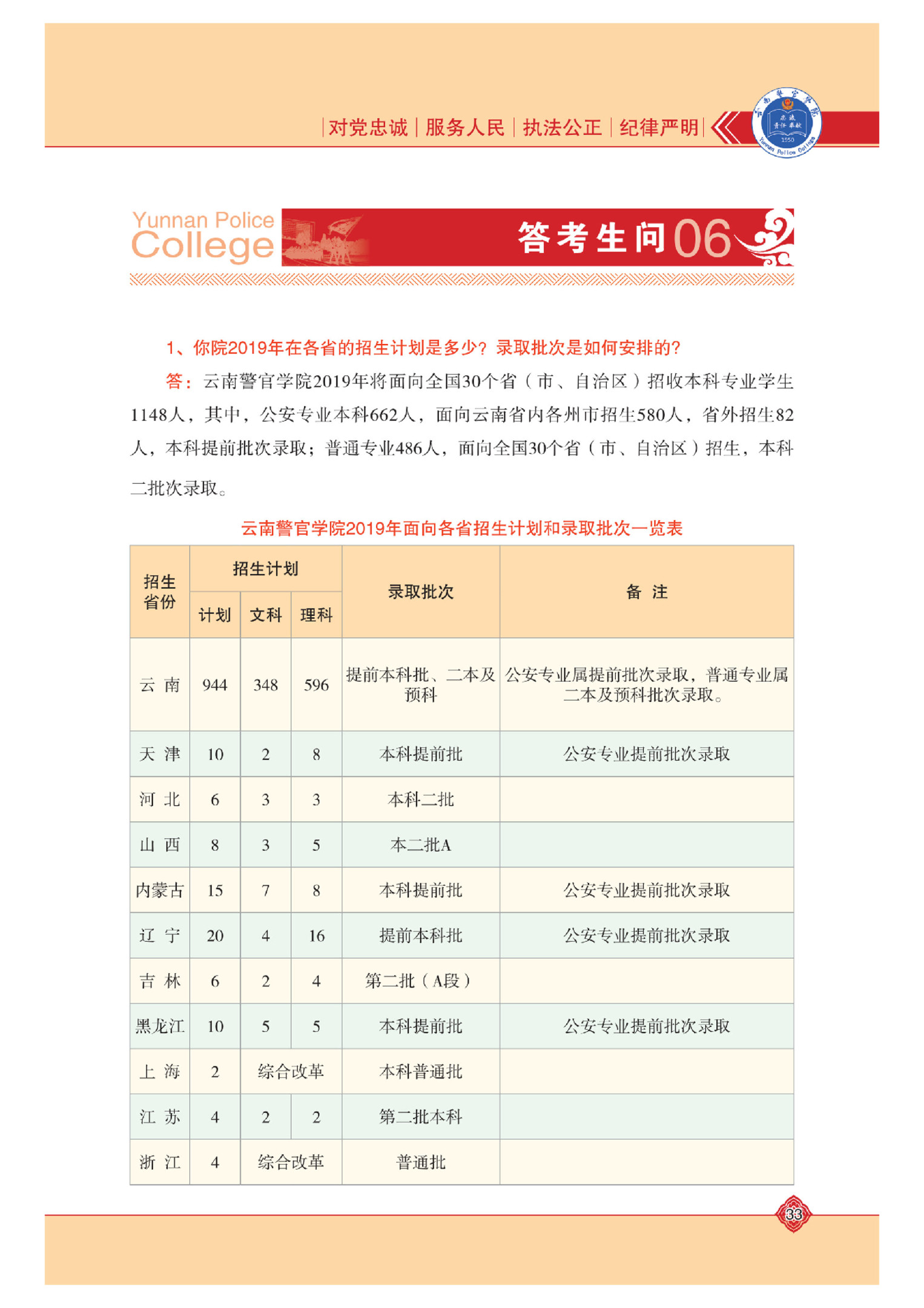 云南警官學(xué)院2019年本科分省專業(yè)招生計劃一覽表