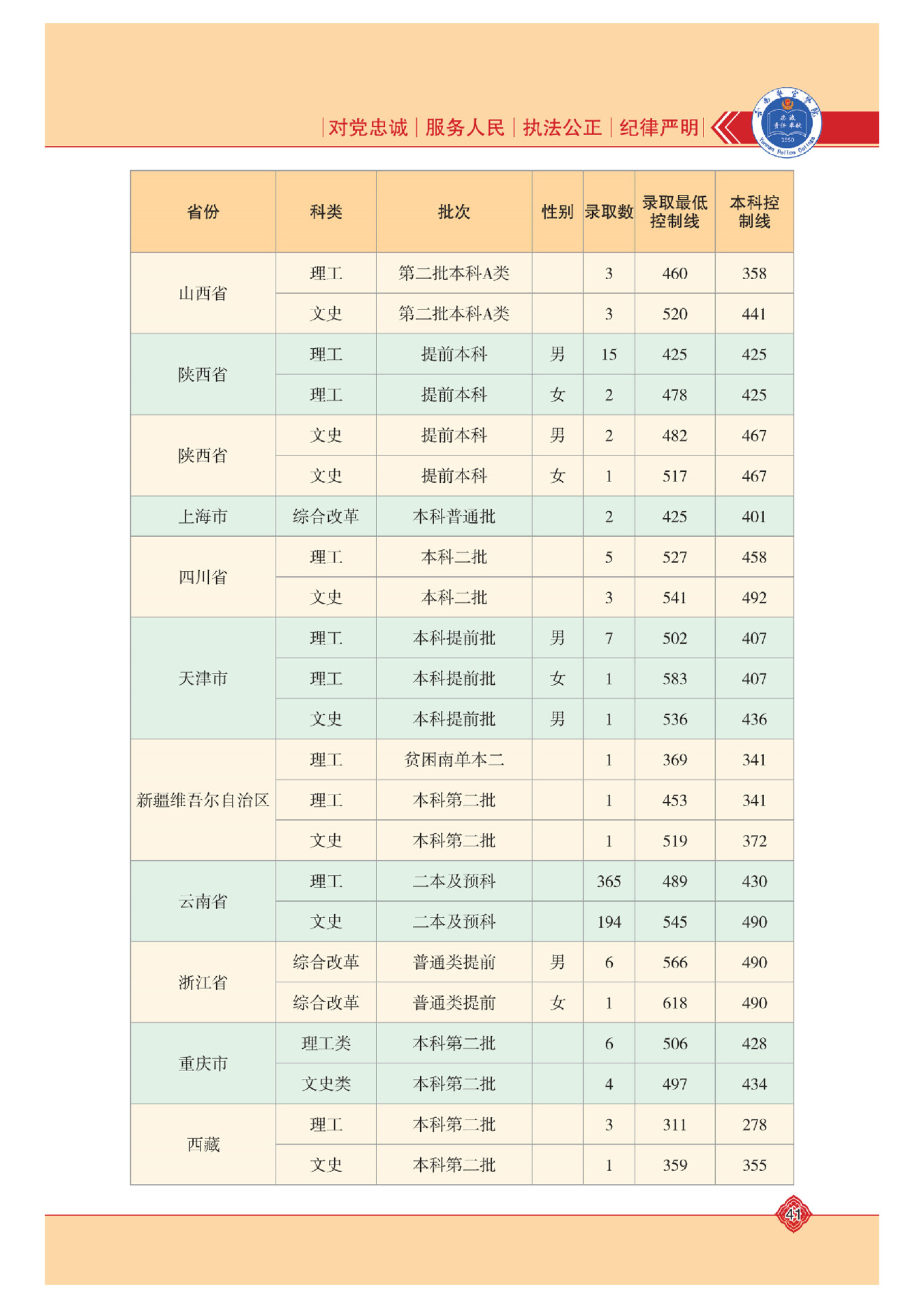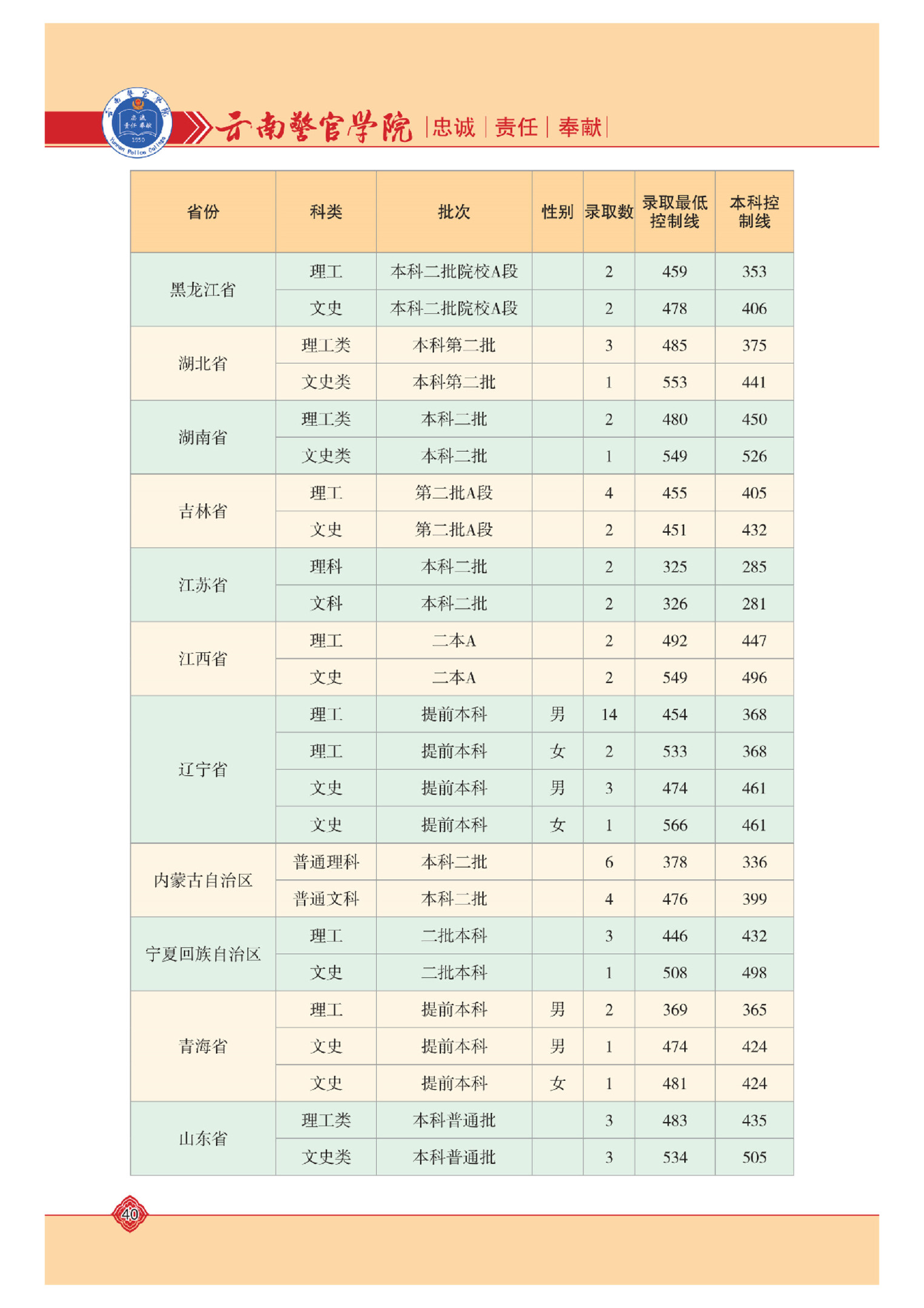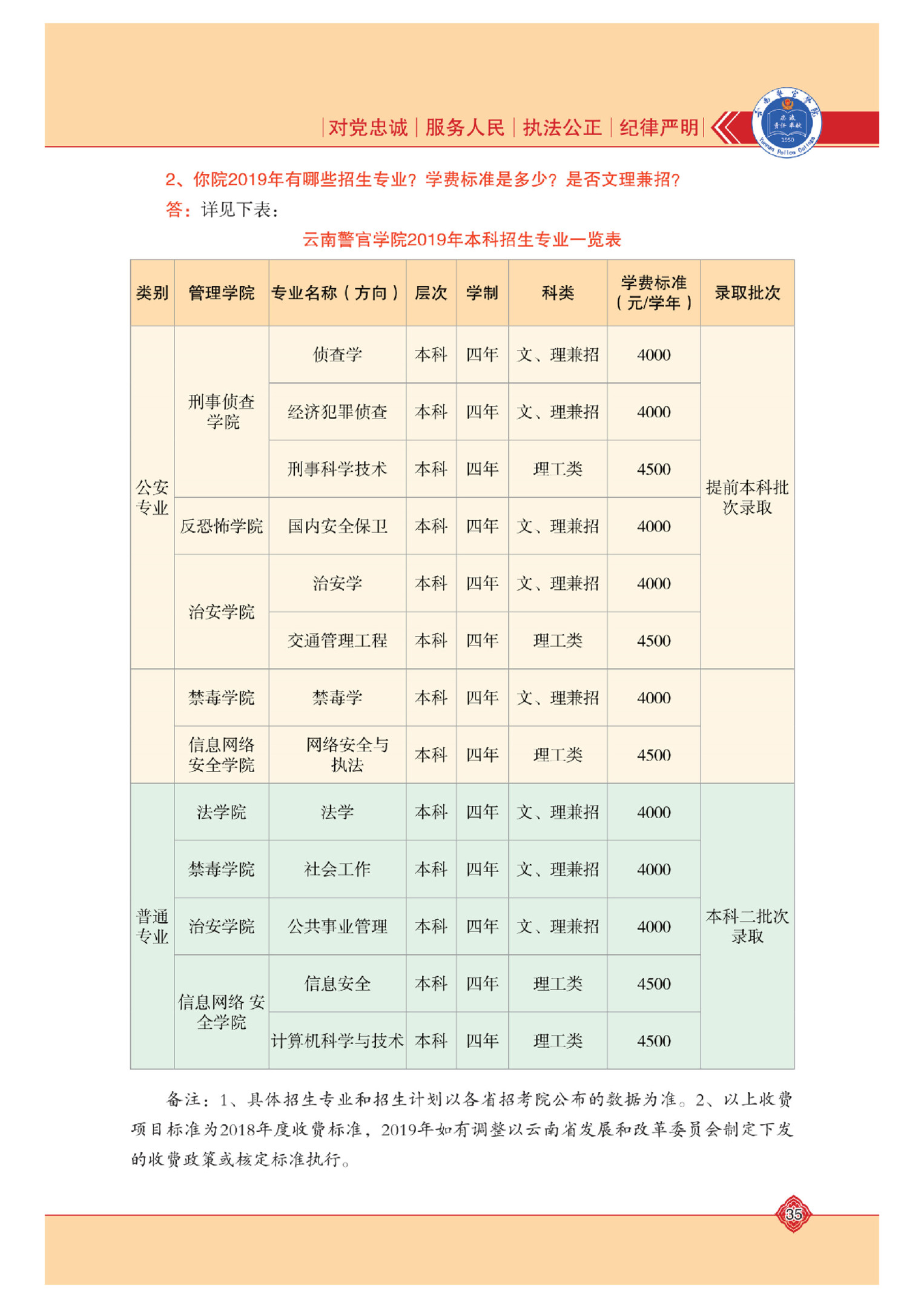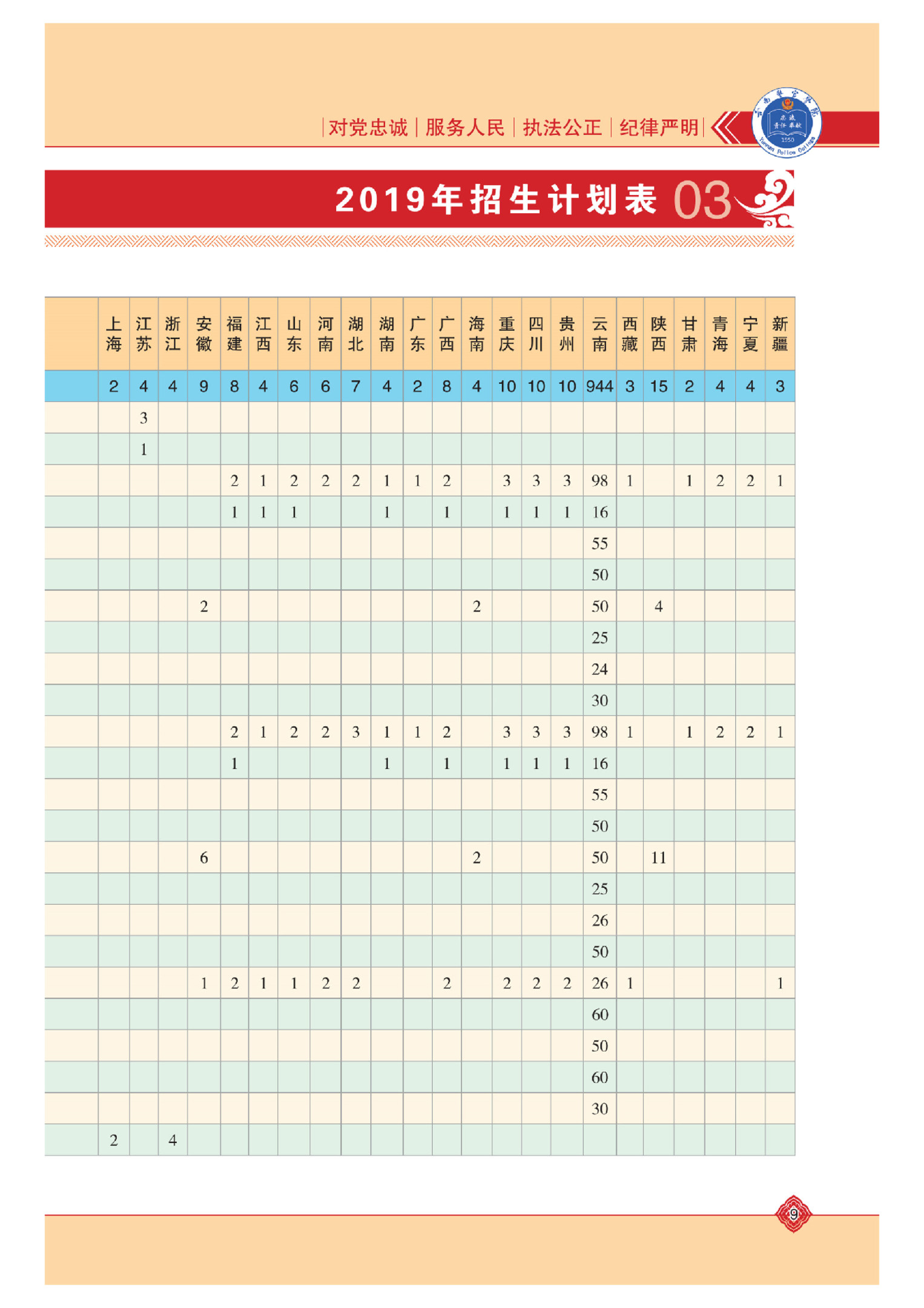 云南警官學(xué)院2019年本科分省專業(yè)招生計劃一覽表