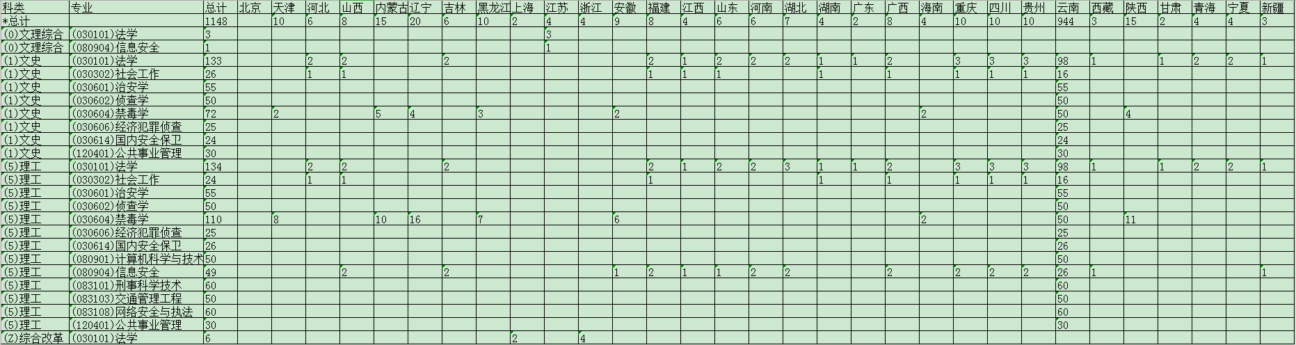 云南警官學(xué)院2019年本科分省專業(yè)招生計(jì)劃一覽表