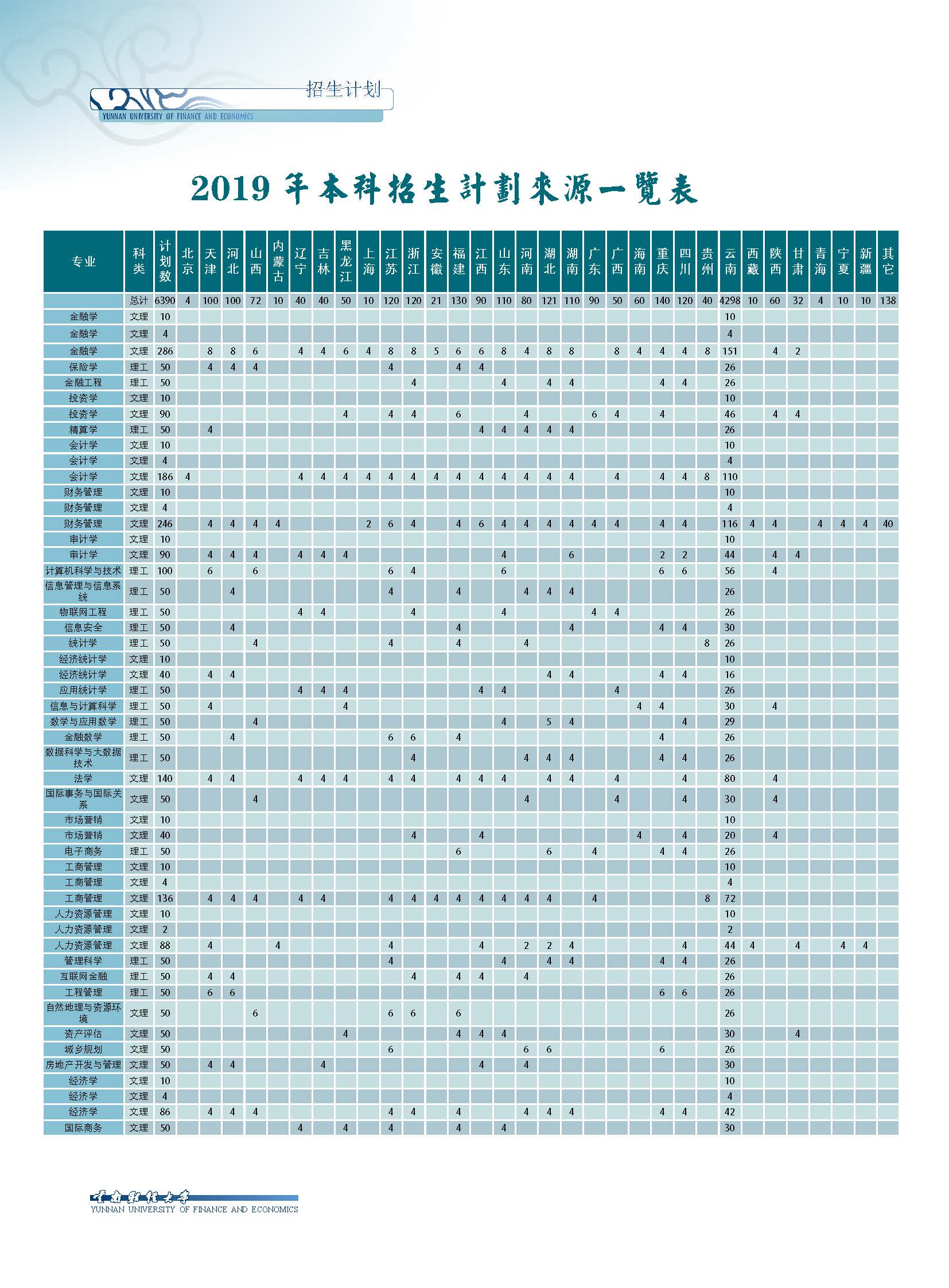云南財(cái)經(jīng)大學(xué)2019年本科招生計(jì)劃來(lái)源一覽表