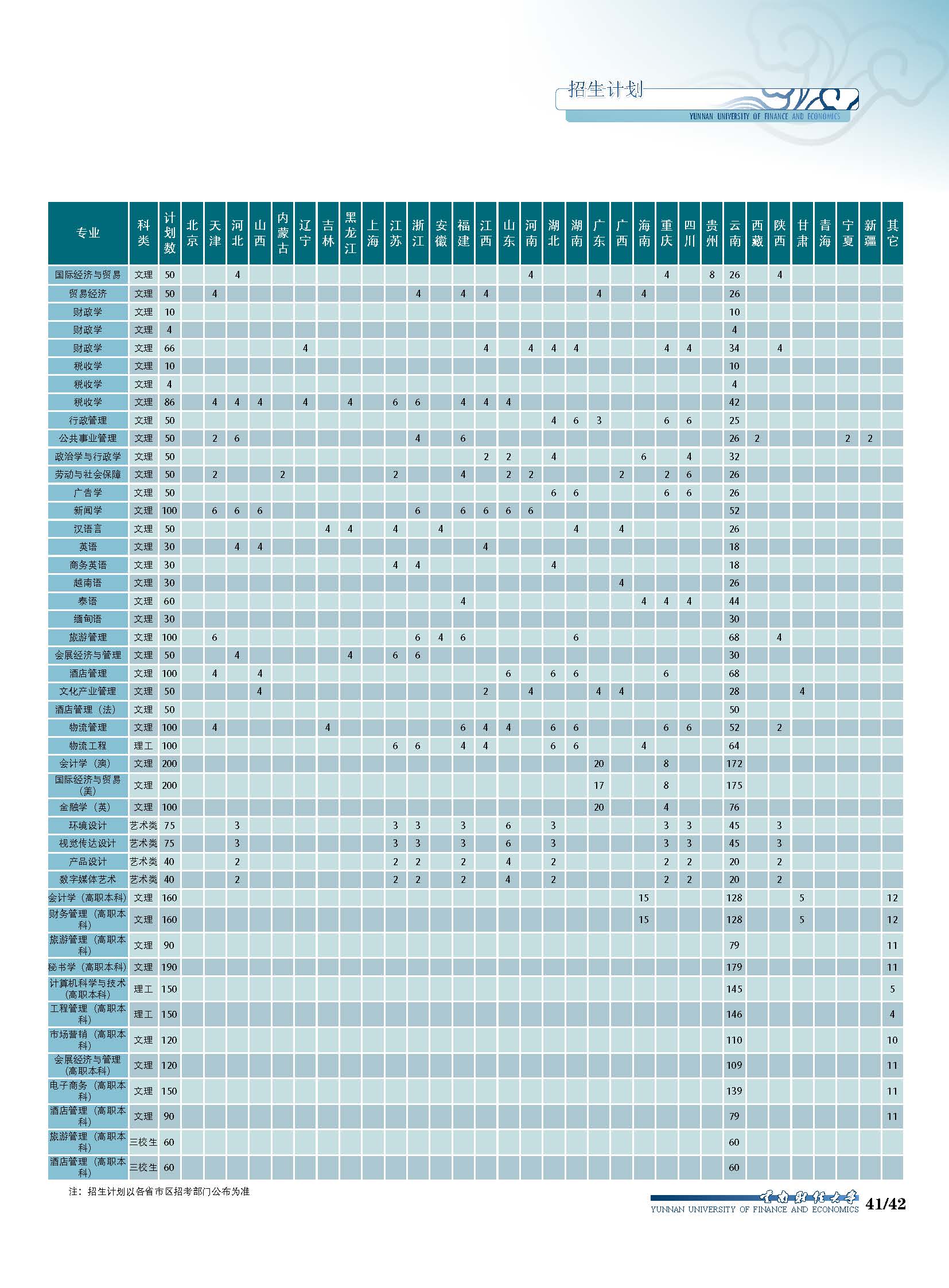 云南財(cái)經(jīng)大學(xué)2019年分專業(yè)招生計(jì)劃表