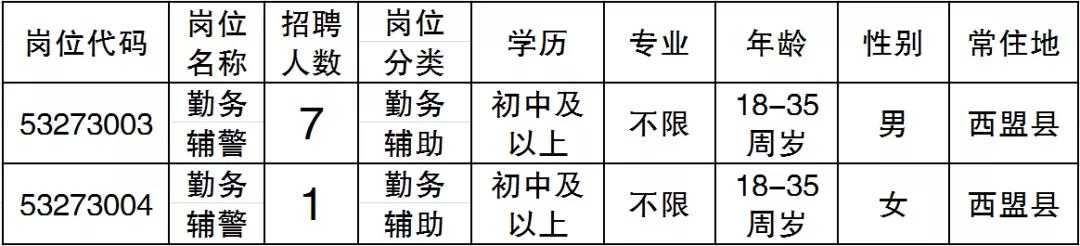 西盟縣2019年度公開招聘勤務輔警公告
