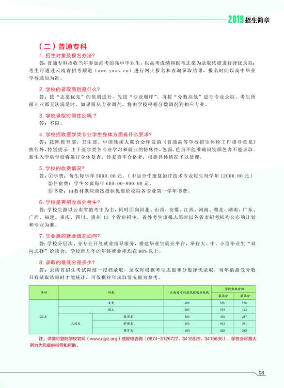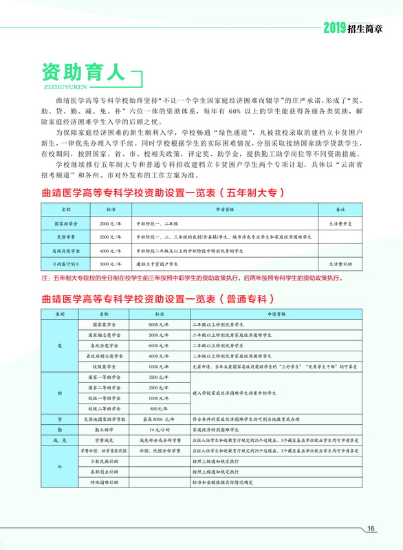 2019曲靖醫(yī)學(xué)高等??茖W(xué)校招生簡章