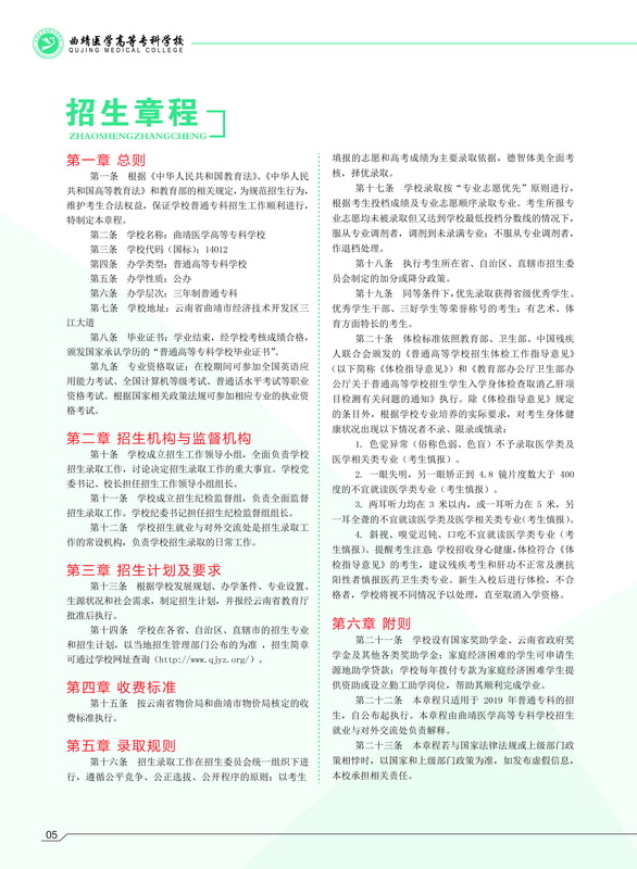2023年曲靖醫(yī)學(xué)高等??茖W(xué)校招生章程