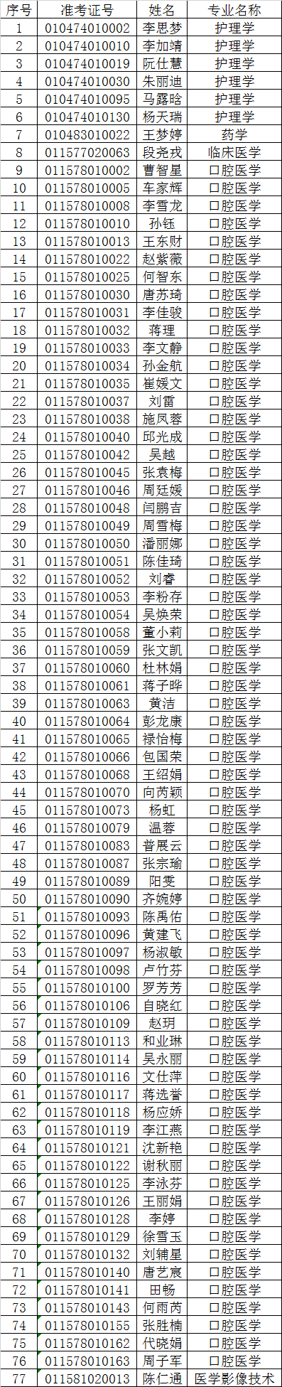 2019年昆明衛(wèi)生職業(yè)學(xué)院“專升本”昆明學(xué)院錄取名單(第一批)