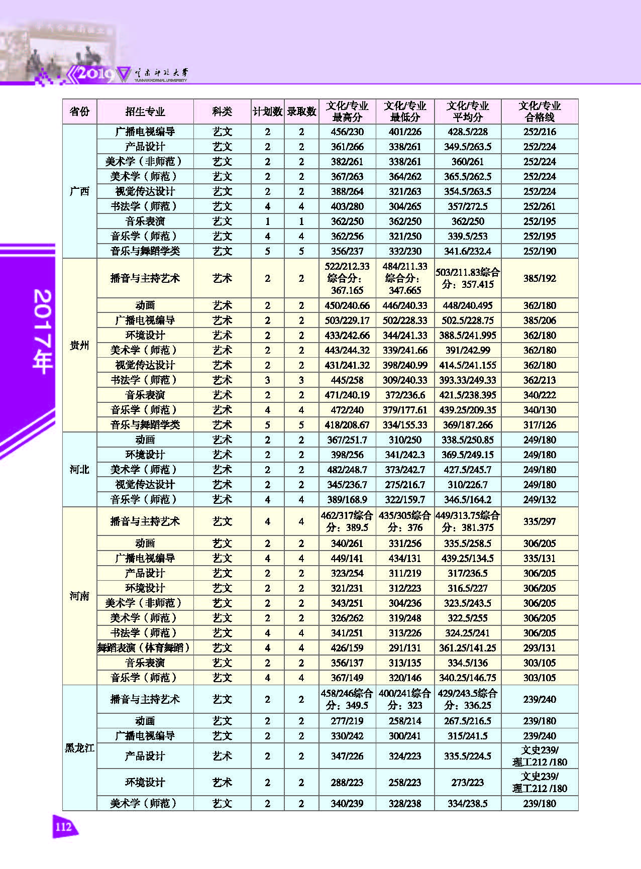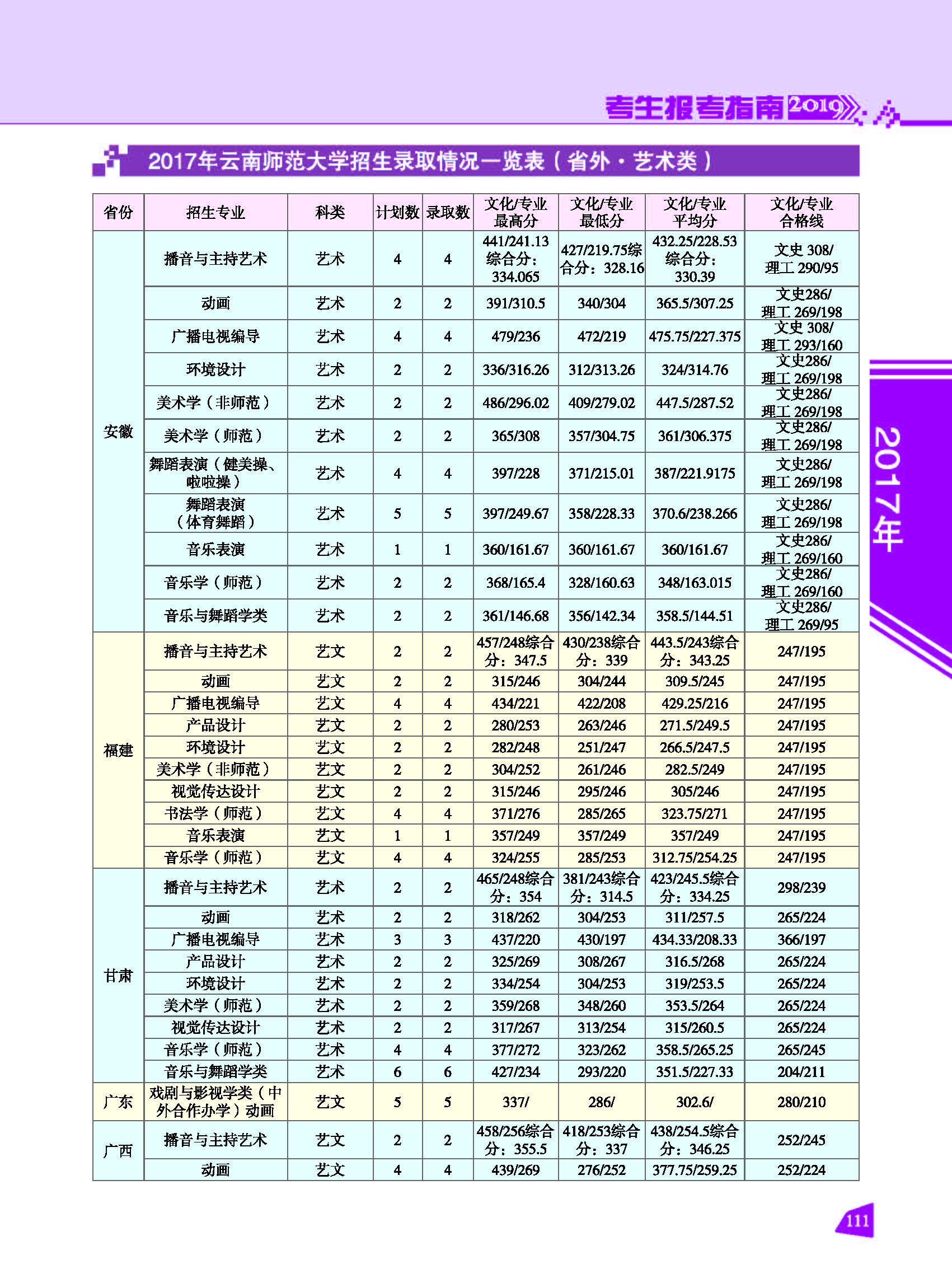 2017年云南師范大學(xué)招生錄取情況一覽表(省外.藝術(shù)類)