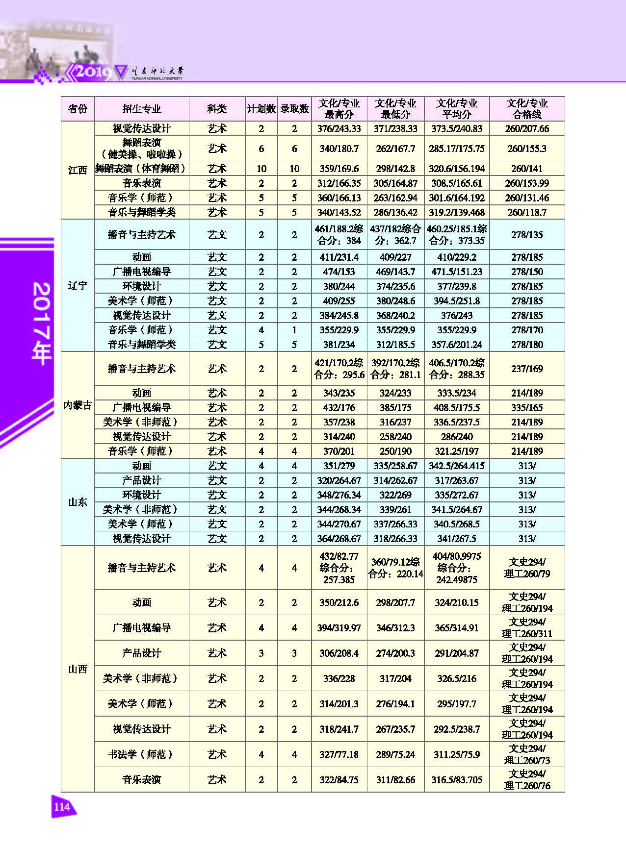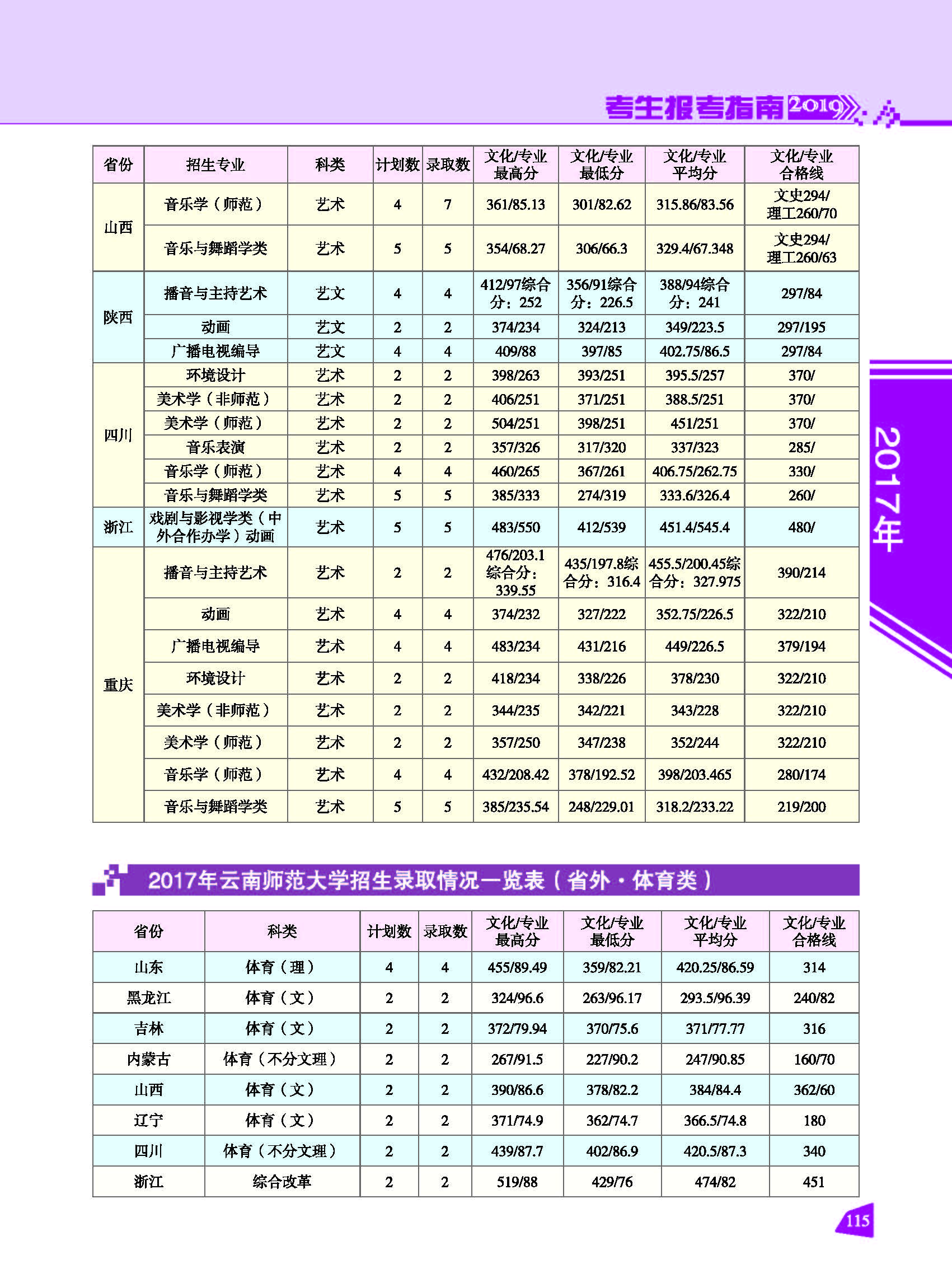 2017年云南師范大學(xué)招生錄取情況一覽表(省外.文史理工)