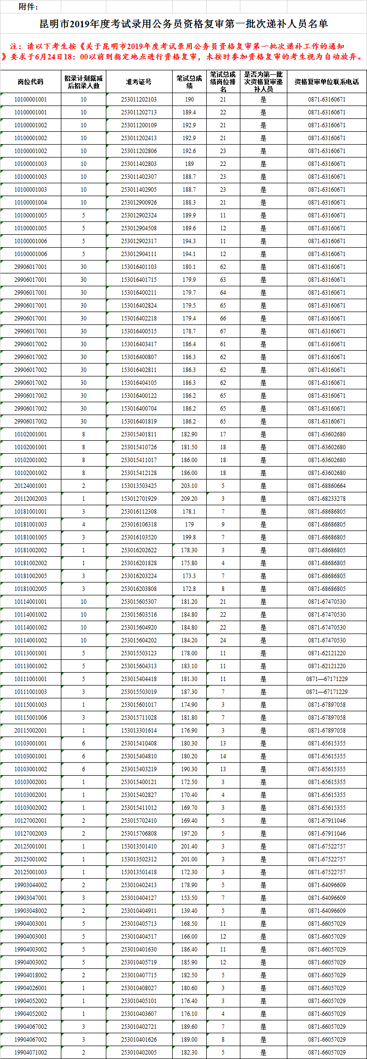 附件:昆明市2019年度考試錄用公務(wù)員資格復(fù)審第一批次遞補(bǔ)人員名單