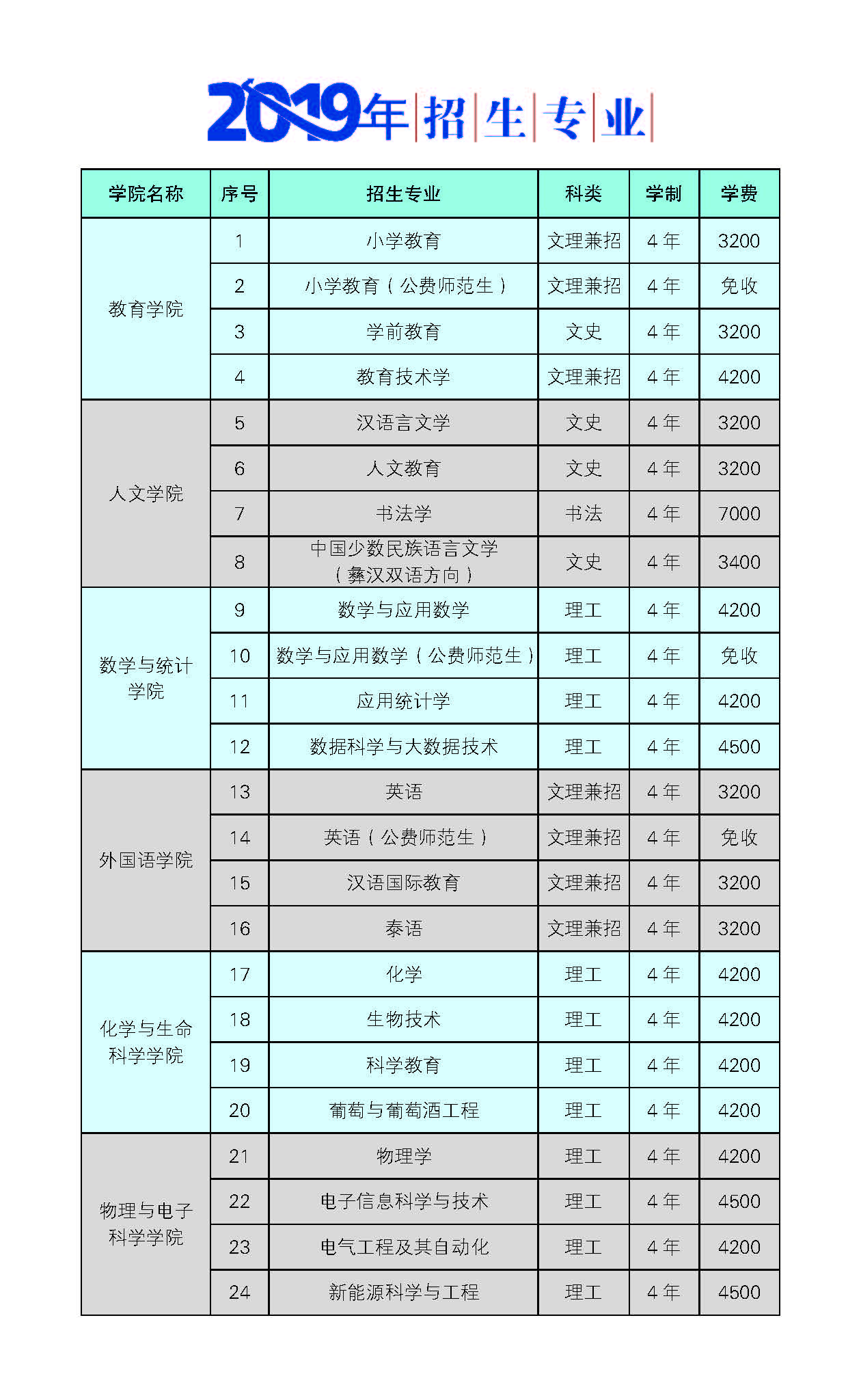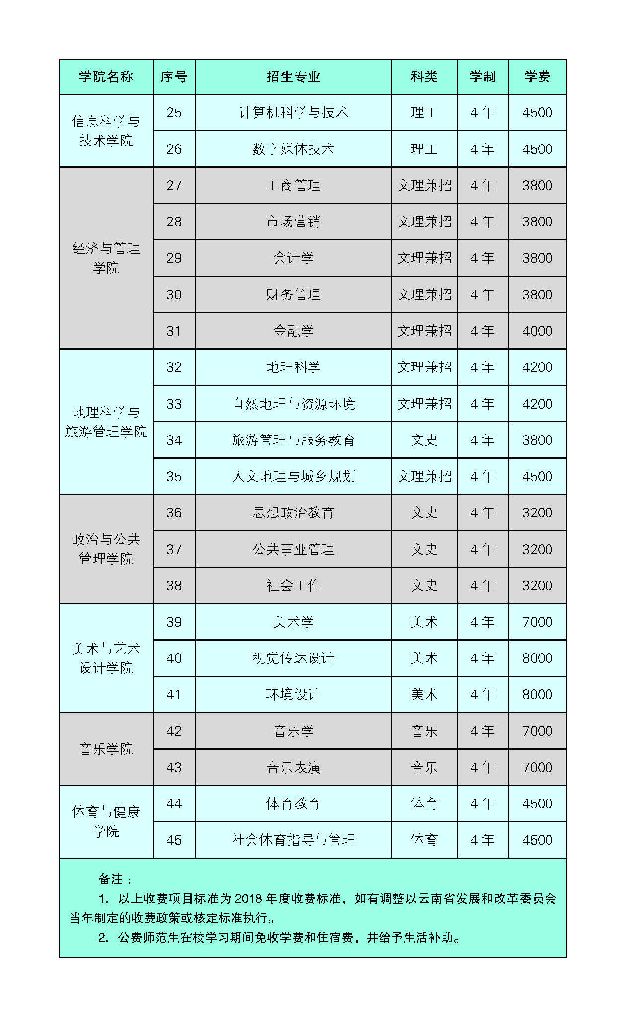 2019年楚雄師范學(xué)院本科各招生專業(yè)學(xué)費標準