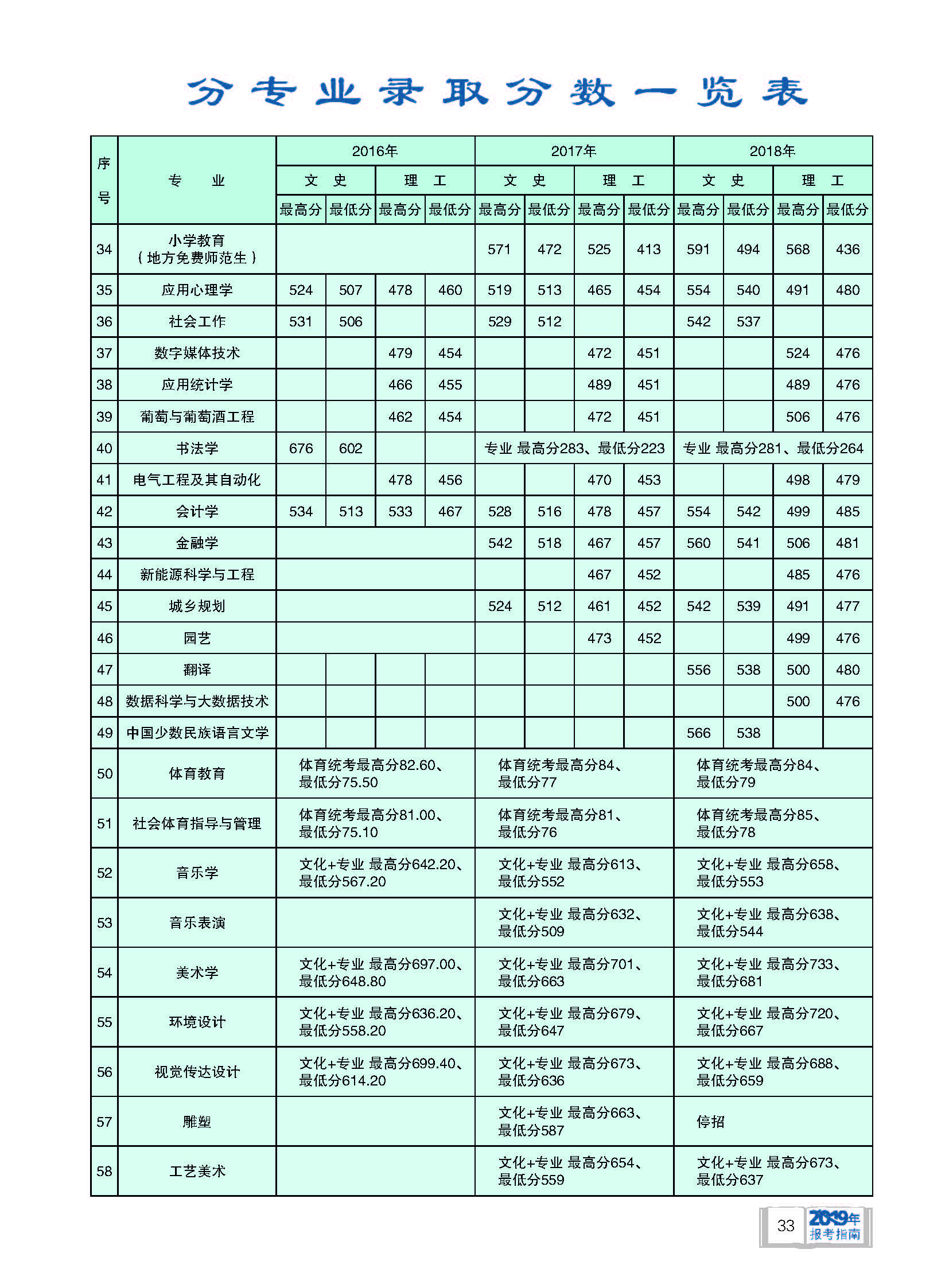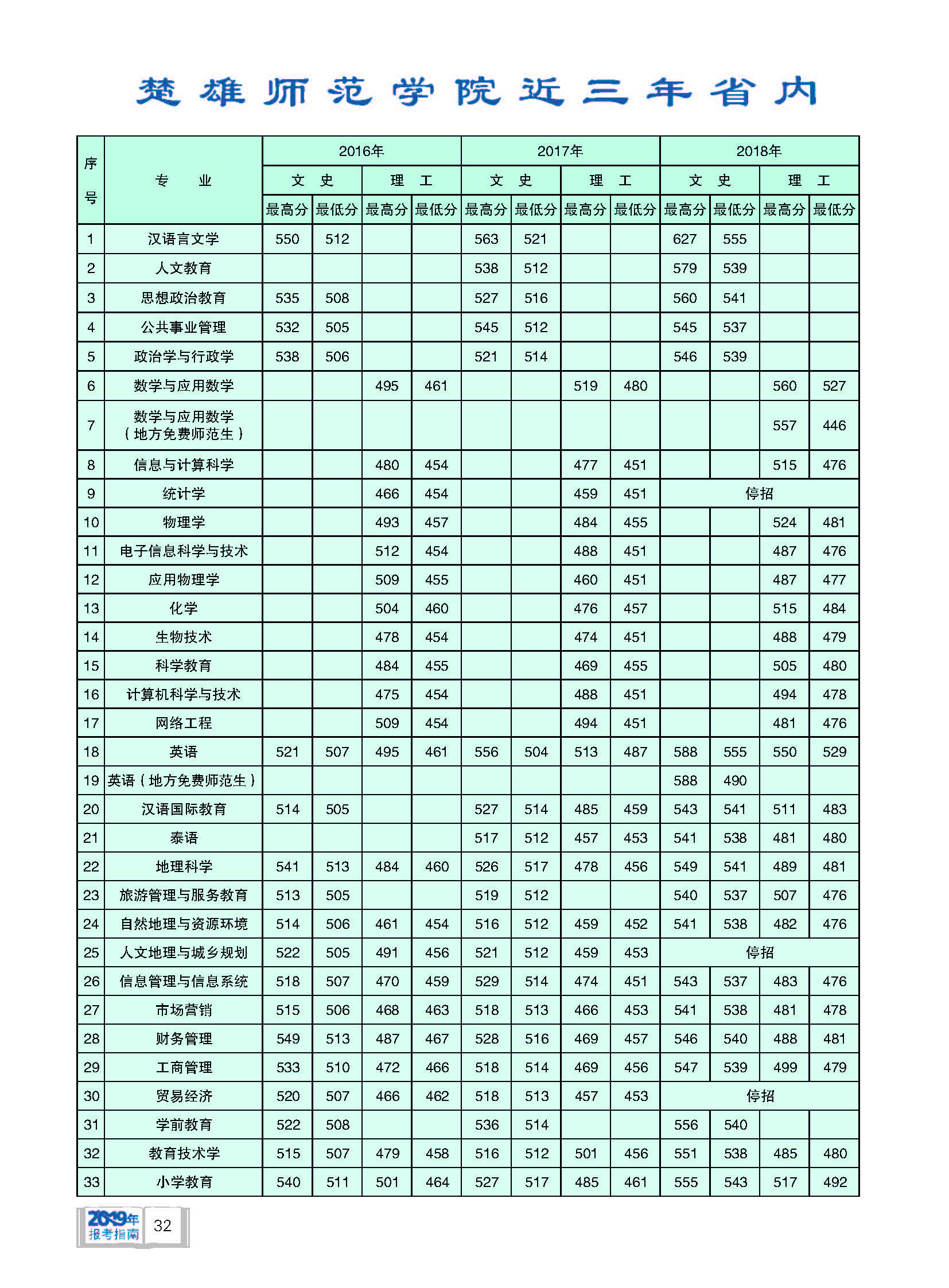 楚雄師范學(xué)院近三年內(nèi)分專業(yè)錄取分?jǐn)?shù)一覽表