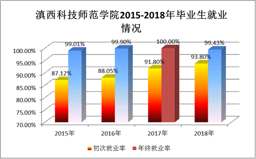 人才培養(yǎng)成效顯著。伴隨著滇西科技師范學(xué)院教育現(xiàn)代化、國際化的步伐,一批批學(xué)子以愛國勵志、篤學(xué)尚行、勇于擔(dān)當(dāng)?shù)钠焚|(zhì),以基礎(chǔ)扎實(shí)、技能嫻熟、一專多能的才學(xué),受到社會的廣泛贊譽(yù)。建校以來培養(yǎng)各類專業(yè)人才累計(jì)達(dá)7萬余人。高素質(zhì)應(yīng)用型人才培養(yǎng)水平日益提升,畢業(yè)生就業(yè)率連續(xù)三年保持在99%以上。近三年學(xué)生在各級各類競賽中屢獲佳績,榮獲世界級獎項(xiàng)2項(xiàng)、國家級獎項(xiàng)7項(xiàng)、省級獎項(xiàng)98項(xiàng)。在全國、全省“挑戰(zhàn)杯”、數(shù)學(xué)建模大賽、機(jī)器人大賽、計(jì)算機(jī)作品賽、計(jì)算機(jī)設(shè)計(jì)大賽、電子商務(wù)“三創(chuàng)”大賽、互聯(lián)網(wǎng)+等競賽、大學(xué)生戲劇展演大賽、師范專業(yè)大學(xué)生技能大賽、紀(jì)錄片拍攝大賽中表現(xiàn)出色。學(xué)校有省級“青年創(chuàng)業(yè)示范園”、“眾創(chuàng)空間”、“國際留學(xué)生創(chuàng)業(yè)園”等創(chuàng)業(yè)實(shí)踐平臺,已為1000余名國內(nèi)外大學(xué)生提供了創(chuàng)業(yè)實(shí)踐。學(xué)校連續(xù)獲得“云南省畢業(yè)生就業(yè)目標(biāo)考核一等獎”、“高校畢業(yè)生就業(yè)工作創(chuàng)新獎”、“畢業(yè)生就業(yè)創(chuàng)業(yè)工作質(zhì)量提升獎”、“鼓勵高校畢業(yè)生創(chuàng)新創(chuàng)業(yè)先進(jìn)集體”、“云南省高校十佳創(chuàng)業(yè)園”等榮譽(yù)。