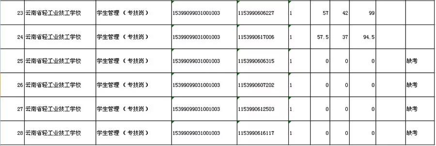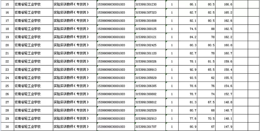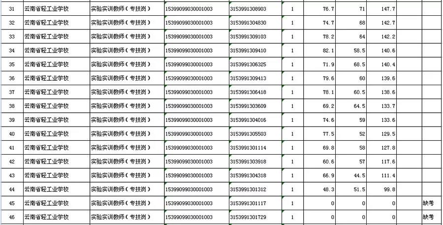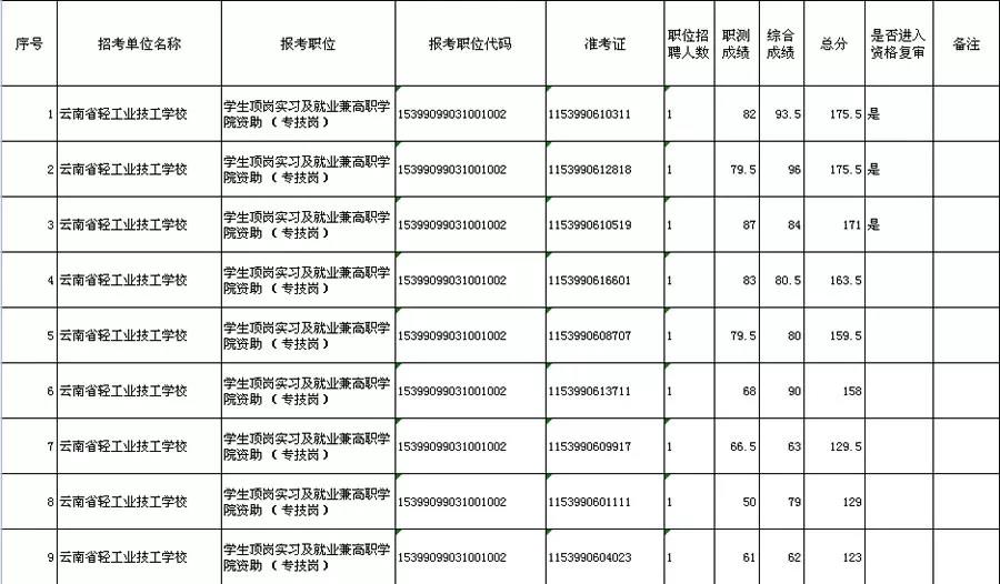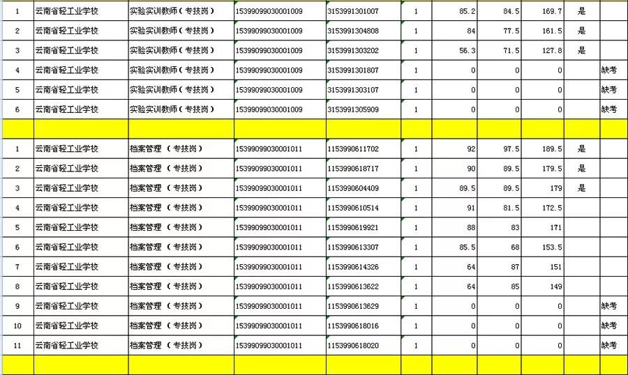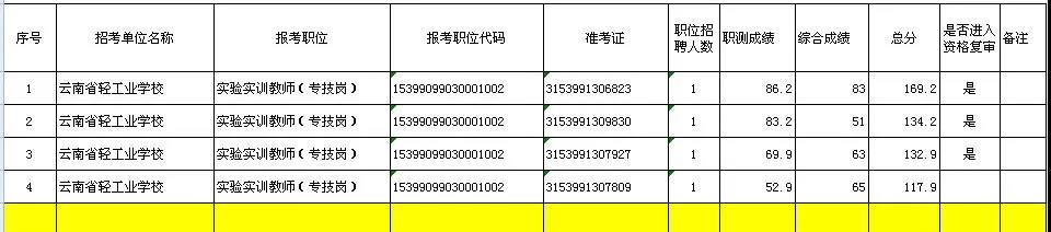2.云南省輕工業(yè)技工學(xué)校2019年事業(yè)單位公開招聘工作人員考試筆試成績及進入資格復(fù)審人員名單