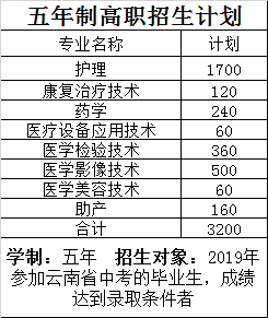 2019年昆明衛(wèi)生職業(yè)學院招生計劃