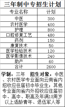 2022年昆明衛(wèi)生職業(yè)學院(初中起點)