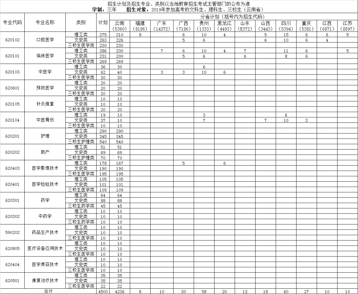 2019年昆明衛(wèi)生職業(yè)學(xué)院招生計(jì)劃