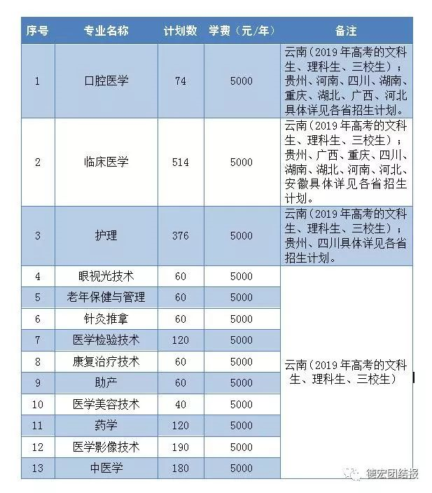 醫(yī)學(xué)類 院校代碼:53D1(云南);貴州、廣西、重慶、四川、湖南、湖北、河南、河北、安徽以各省招考院公布為準(zhǔn)。
