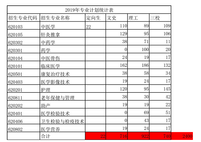 保山中醫(yī)藥高等專科學(xué)校2019年招生計(jì)劃