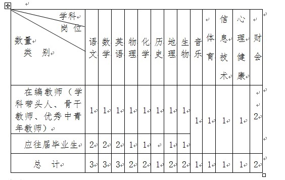 高中設(shè)24個專業(yè)技術(shù)崗位,根據(jù)報名情況依據(jù)學科崗位合理調(diào)劑的原則,各類人員聘用比例可在同一學科內(nèi)適當調(diào)整。 備注: