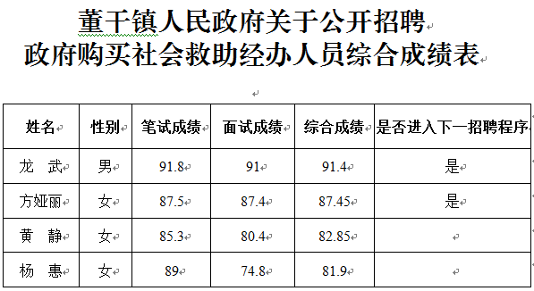 董干鎮(zhèn)人民政府關于公開招聘政府購買社會救助經辦人員綜合成績公告