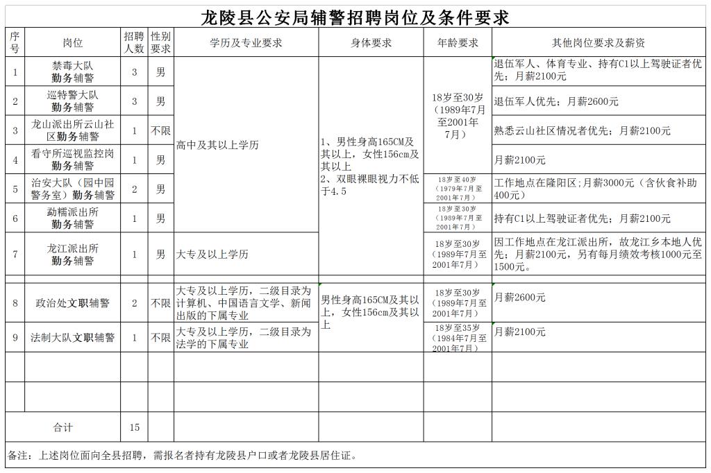 (二)性別、學歷、身高、視力、年齡和其他招聘條件以及崗位薪資詳見具體崗位列表(見附件)。