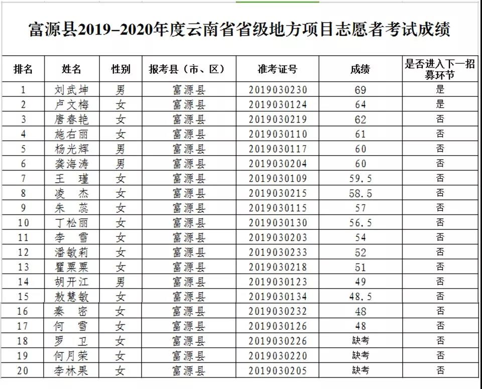 2019-2020年度省級地方項目志愿者筆試成績等事項的公告