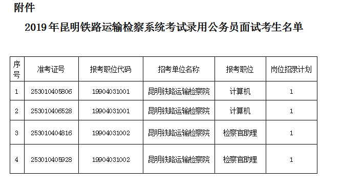 2019年昆明鐵路檢察系統(tǒng)考試錄用公務(wù)員面試公告