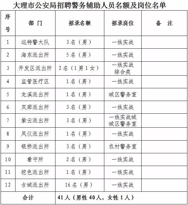 附:大理市公安局招聘警務(wù)輔助人員名額及崗位名單