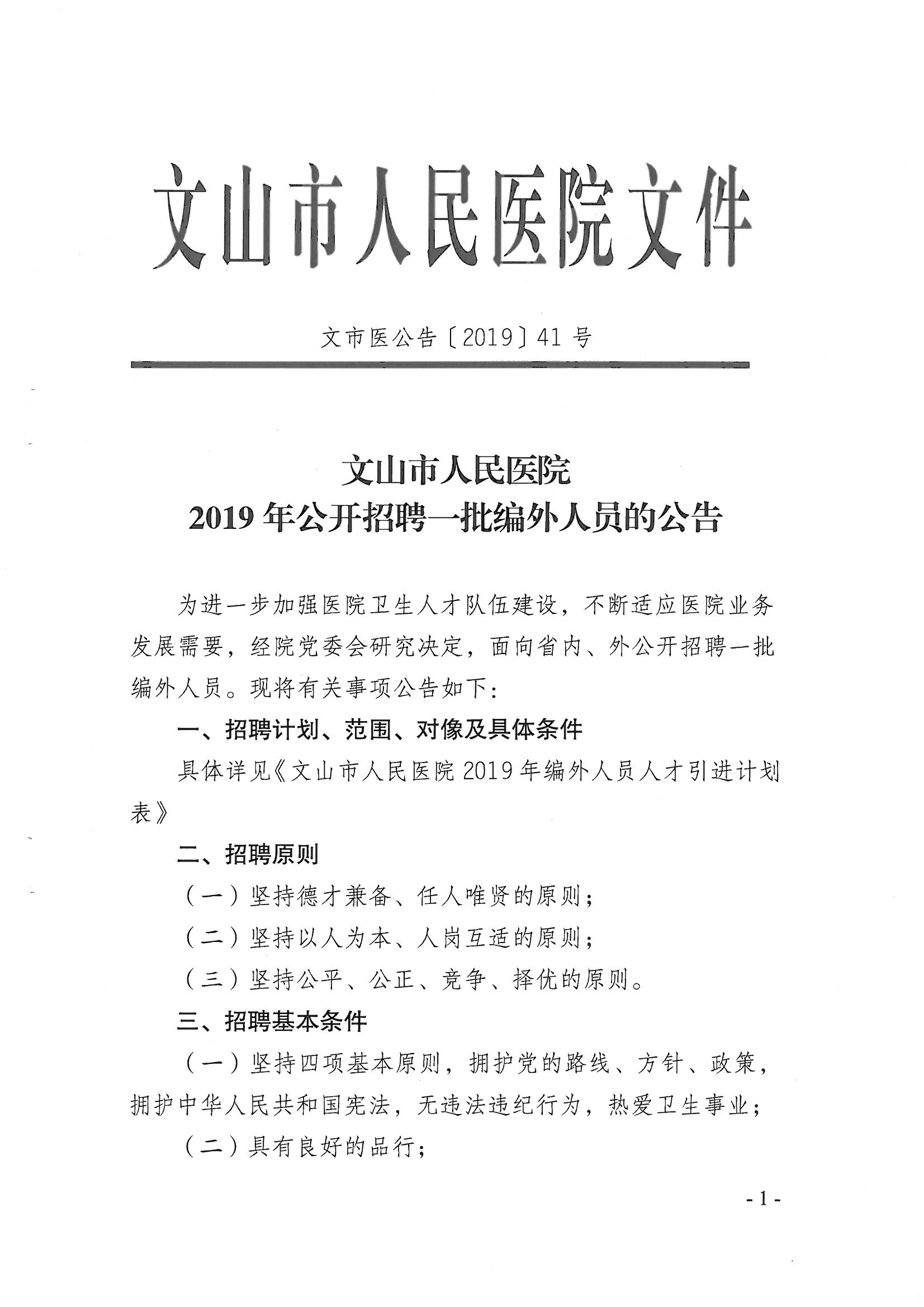 文山市人民醫(yī)院2019年招聘一批編外人員的公告
