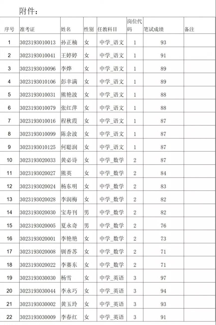 各位考生: